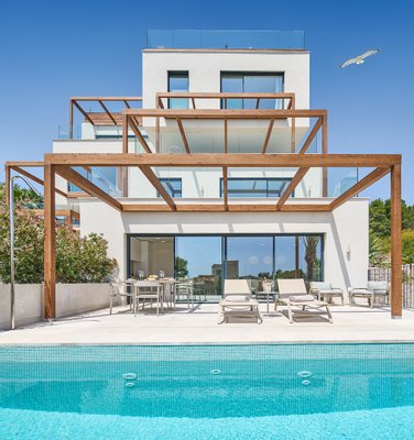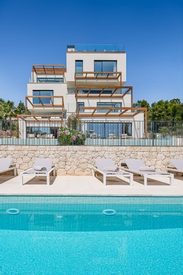 • Großes Pooldeck mit Infinity-Pool und mediterraner Bepflanzung