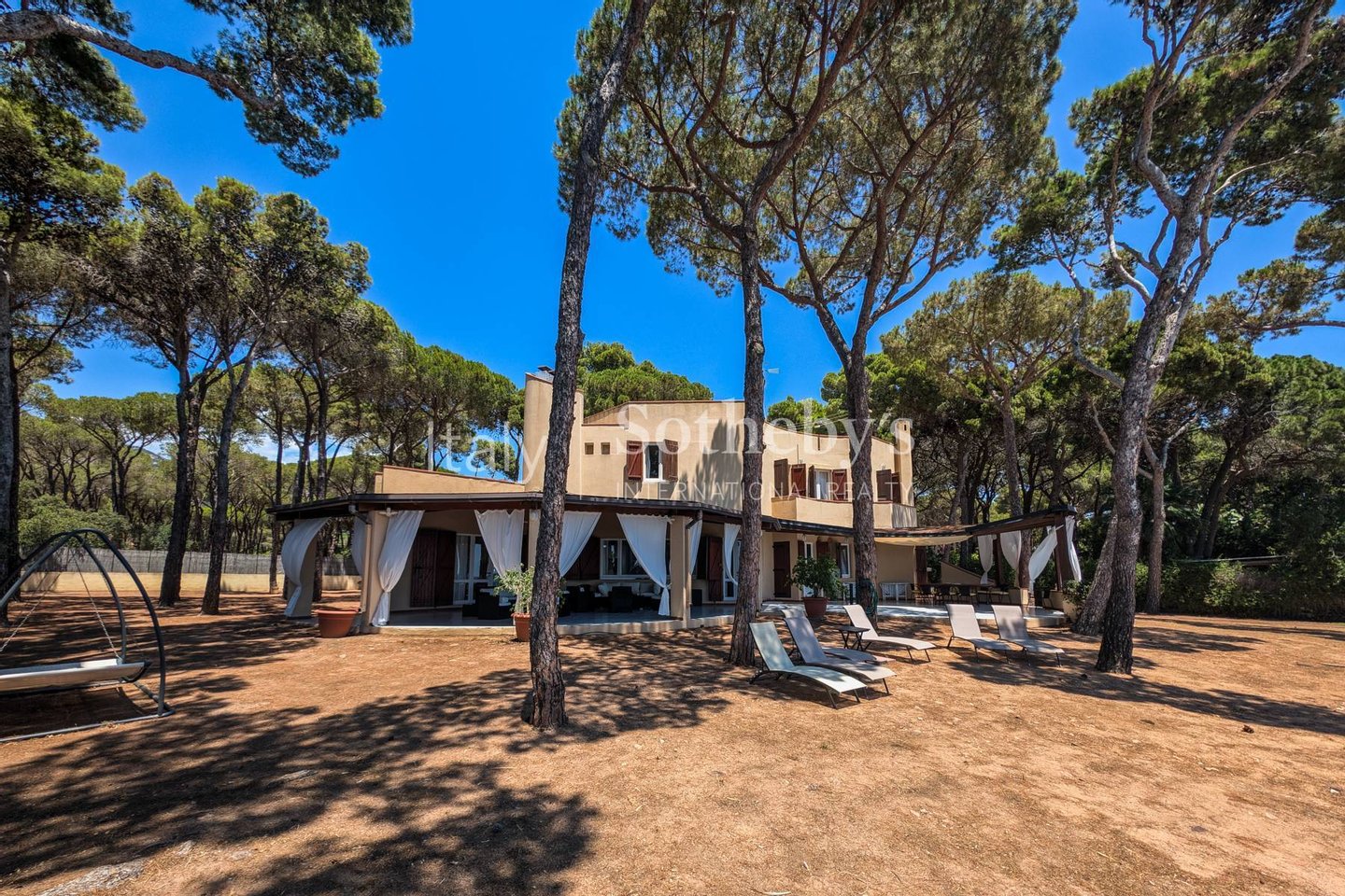 Umgeben von einem 1.800 m² großen Garten und beschattet von mediterranen Pinien, bietet sie einen dire ...mehr lesen