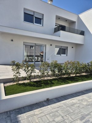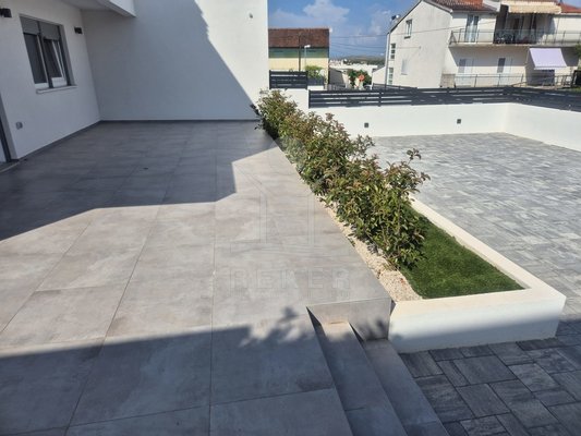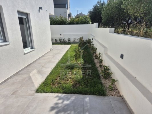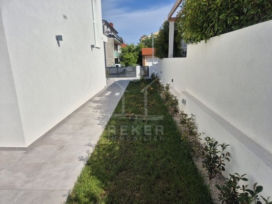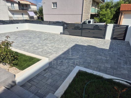 Sie mögen es klar, hell und praktisch? Diese Doppelhaushälfte in Vodice hat genau das – plus Terrasse, Abstellraum, Gäste-WC und einen umzäunten Hof mit 3 Stellplätzen.