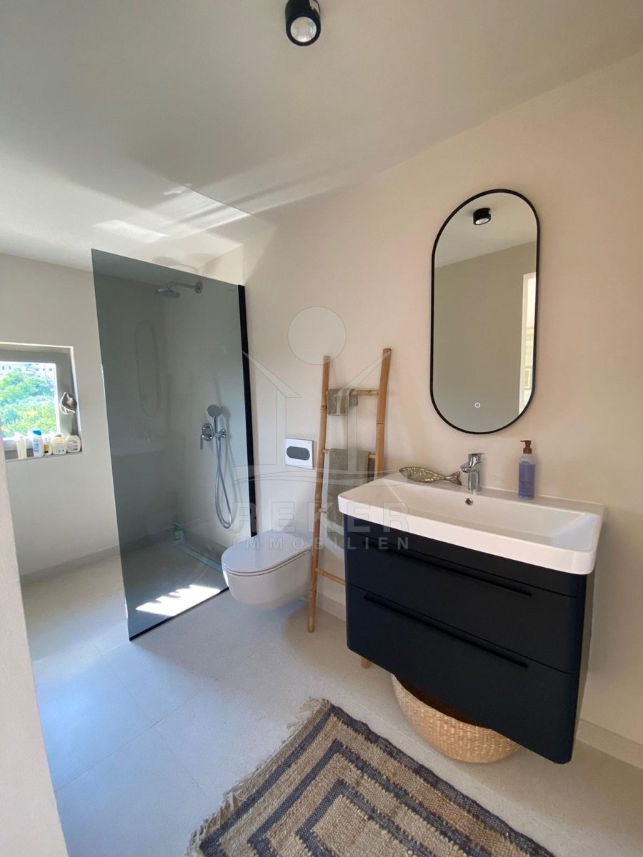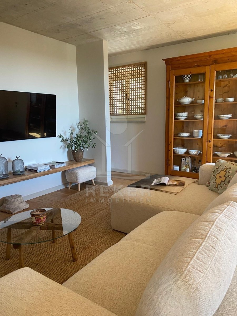 Der Garten ist klein, aber wirkt größer. Das liegt an der guten Gestaltung – Olivenbaum, Hecken, Rasenfläche, ein bisschen Schatten, viel Sonne. Ideal für alle, die draußen sein wollen, ohne ständig den Rasenmäher schieben zu müssen. Der Balkon im Obergeschoss ist das eigentliche Highlight. Der Blick? Einfach echt. Und ehrlich schön.