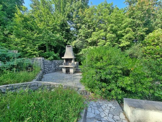 Wer absolute Ruhe sucht, wird in Veprinac fündig. Dieses Haus liegt mitten im Grünen, ganz für sich allein – und doch nur 10 Minuten von Rijeka entfernt. Der Blick aufs Meer ist offen, unverbaubar und nach Süden ausgerichtet. Die Zufahrt endet direkt