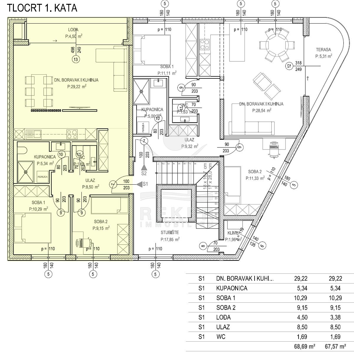 Zwei Schlafzimmer, ein luftiger Wohnbereich, moderne Ausstattung und ein Platz an der frischen Luft – diese Wohnung in Tar bringt Alltag und Entspannung zusammen.