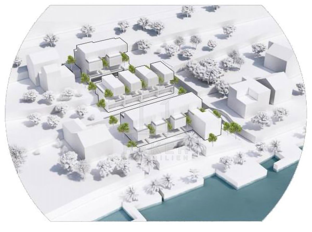 Ein Grundstück, das Potenzial atmet: Flussblick, Südausrichtung, 16 Einheiten zwischen 70 und 120 m². Die Planung setzt auf Raumgefühl, Licht und hohe Vermietbarkeit.
