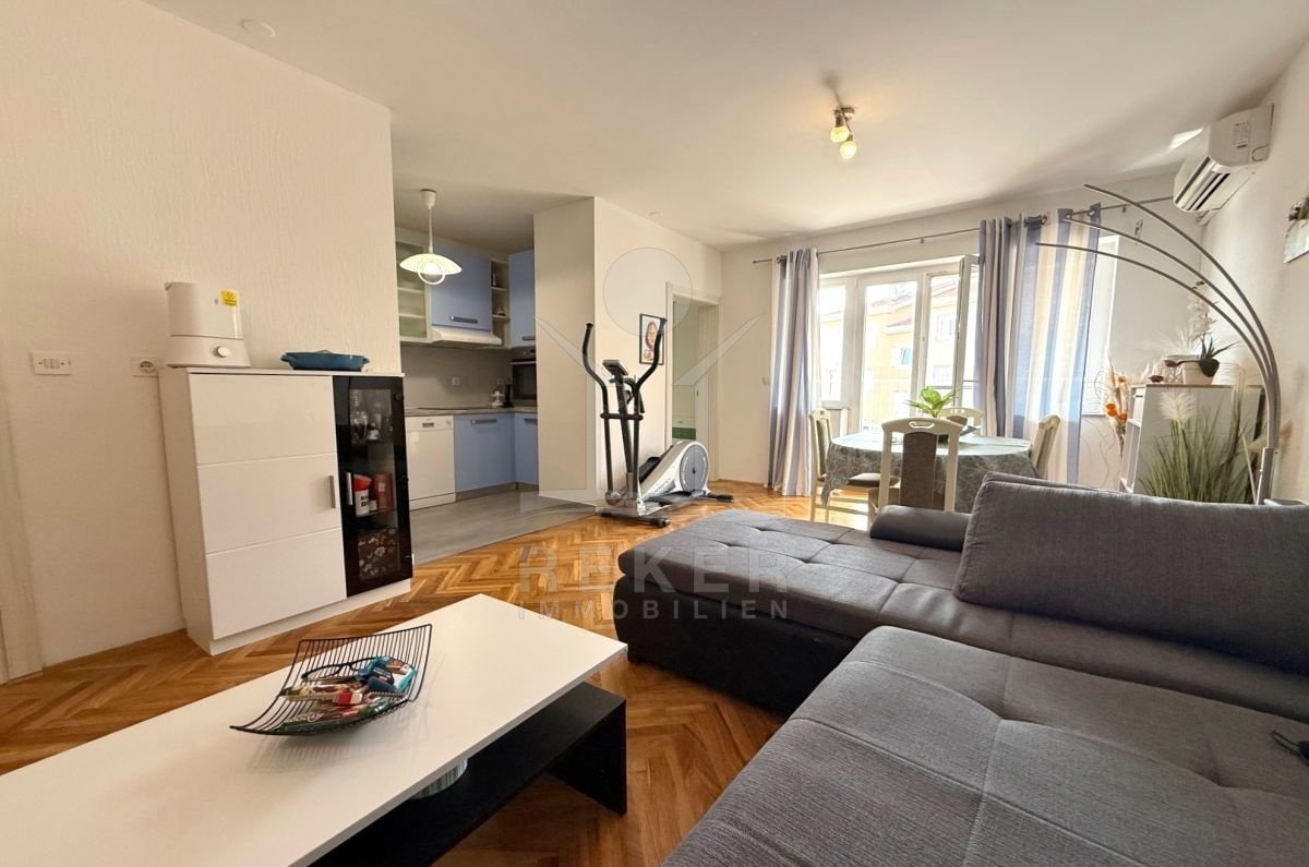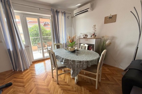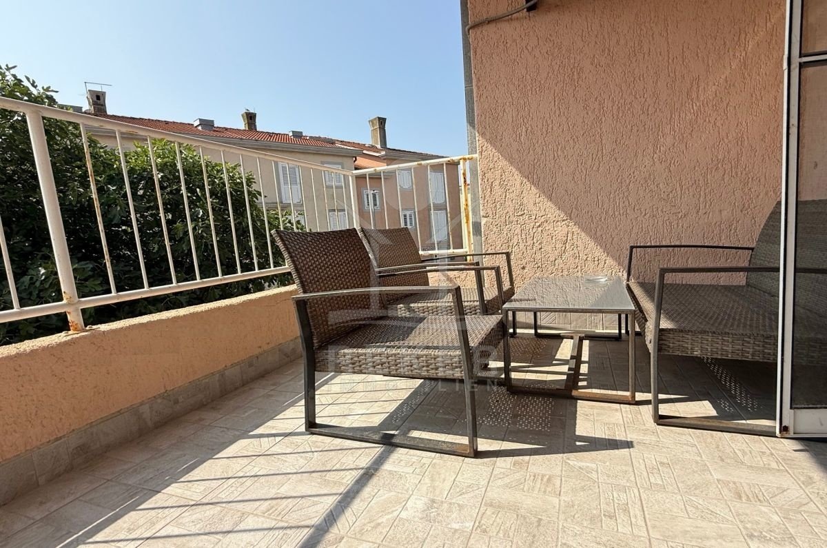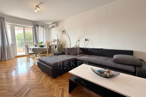 Wer in der Stadt Krk wohnen möchte, hat es gern unkompliziert. Alles zu Fuß erreichbar, kurze Wege zum Strand, frisches Obst vom Markt. Genau das bietet diese Wohnung: 600 Meter vom Zentrum und 800 Meter vom Meer entfernt. Sie liegt im ersten Stock