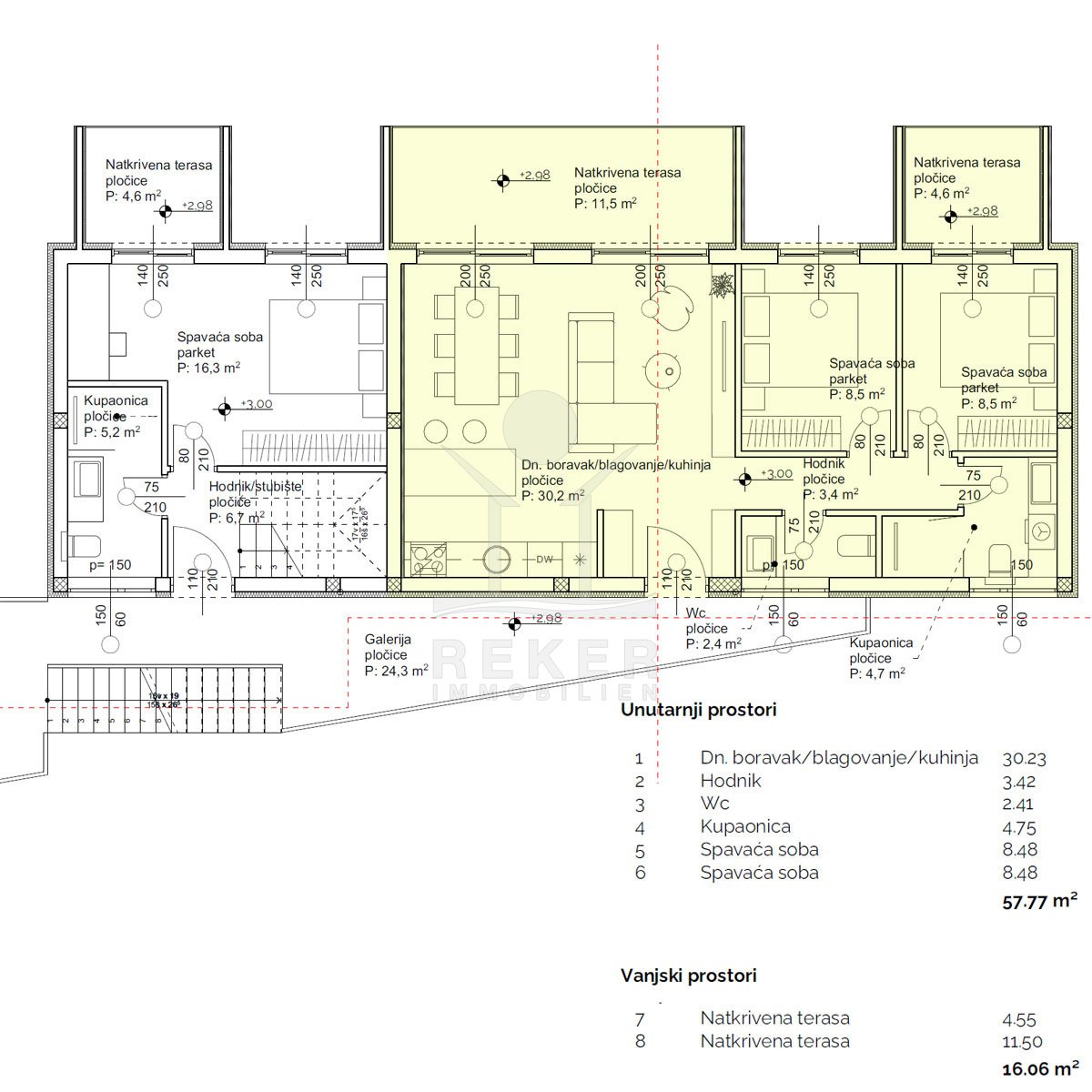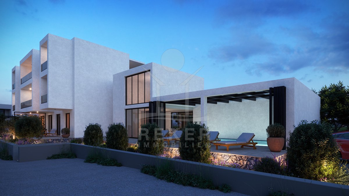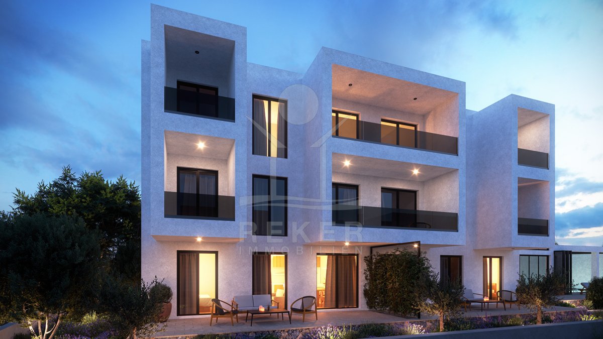 Nur rund einen Kilometer vom Meer entfernt und mitten im Grünen: In Bilice, nahe Vodice, steht dieses moderne Apartmenthaus. Die Lage? Ruhig. Kein Durchgangsverkehr, kein Lärm. Dafür viel Natur. Und trotzdem alles gut erreichbar. Das Haus liegt in einem kleinen Resort – ideal, wenn Sie Erholung suchen und trotzdem flexibel bleiben möchten. Das Gebäude hat fünf Wohnungen. Zwei im Erdgeschoss, je eine im ersten und zweiten Stock. Dazu eine Maisonette über zwei Etagen. Die Architektur ist klar, zeitgemäß, praktisch. Gebaut für das ganze Jahr.