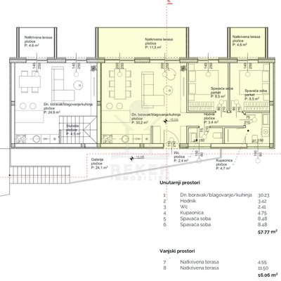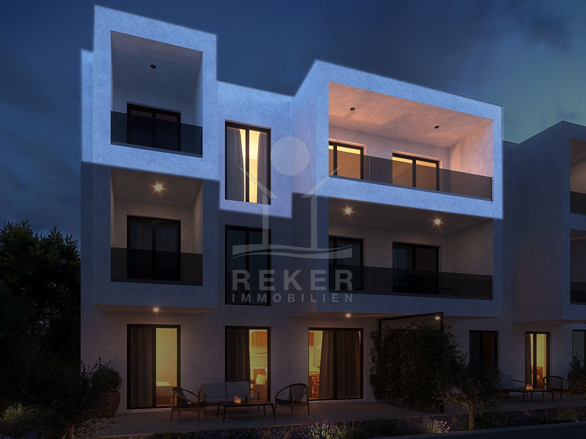 Nur rund einen Kilometer vom Meer entfernt und mitten im Grünen: In Bilice, nahe Vodice, steht dieses moderne Apartmenthaus. Die Lage? Ruhig. Kein Durchgangsverkehr, kein Lärm. Dafür viel Natur. Und trotzdem alles gut erreichbar. Das Haus liegt in einem kleinen Resort – ideal, wenn Sie Erholung suchen und trotzdem flexibel bleiben möchten. Das Gebäude hat fünf Wohnungen. Zwei im Erdgeschoss, je eine im ersten und zweiten Stock. Dazu eine Maisonette über zwei Etagen. Die Architektur ist klar, zeitgemäß, praktisch. Gebaut für das ganze Jahr.