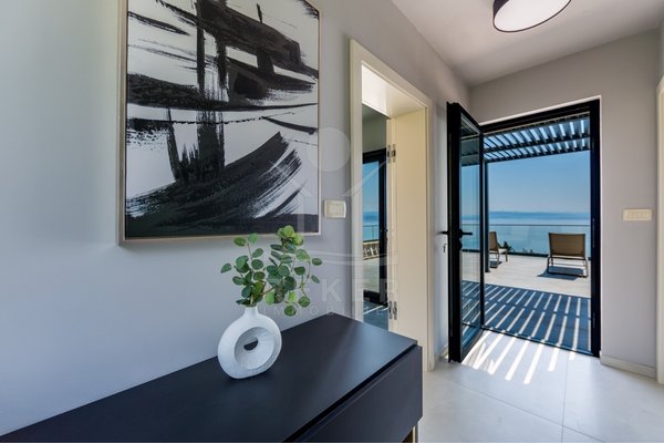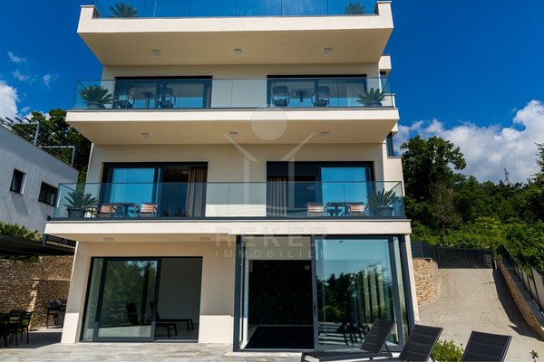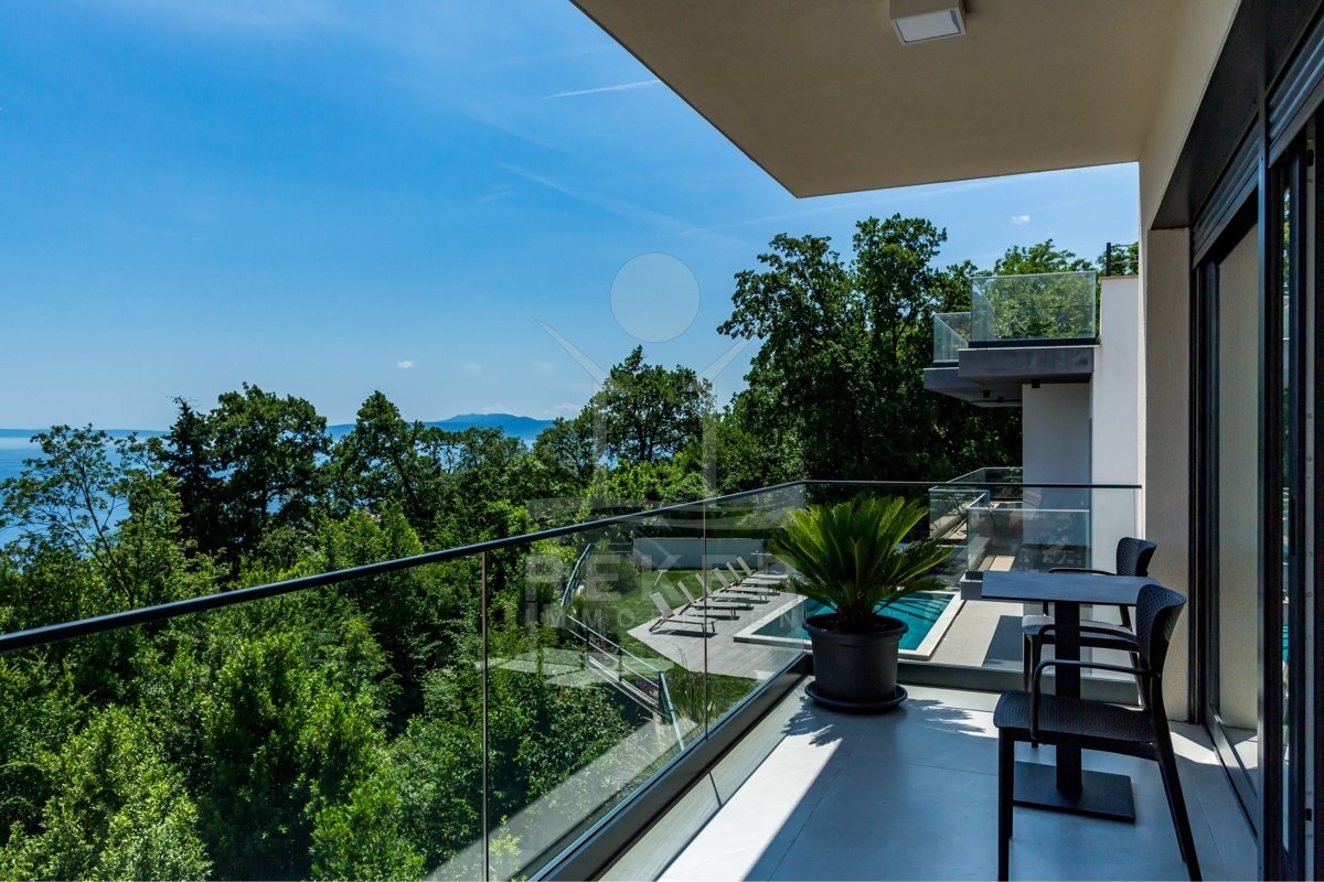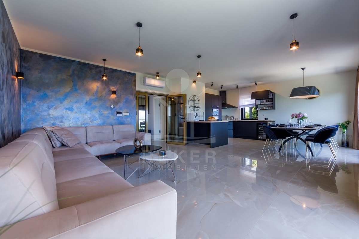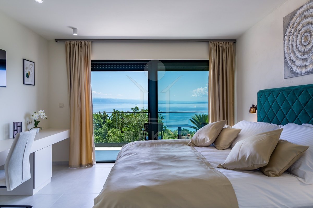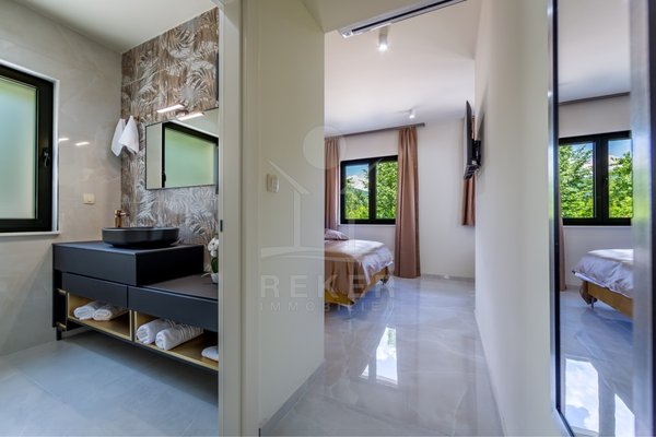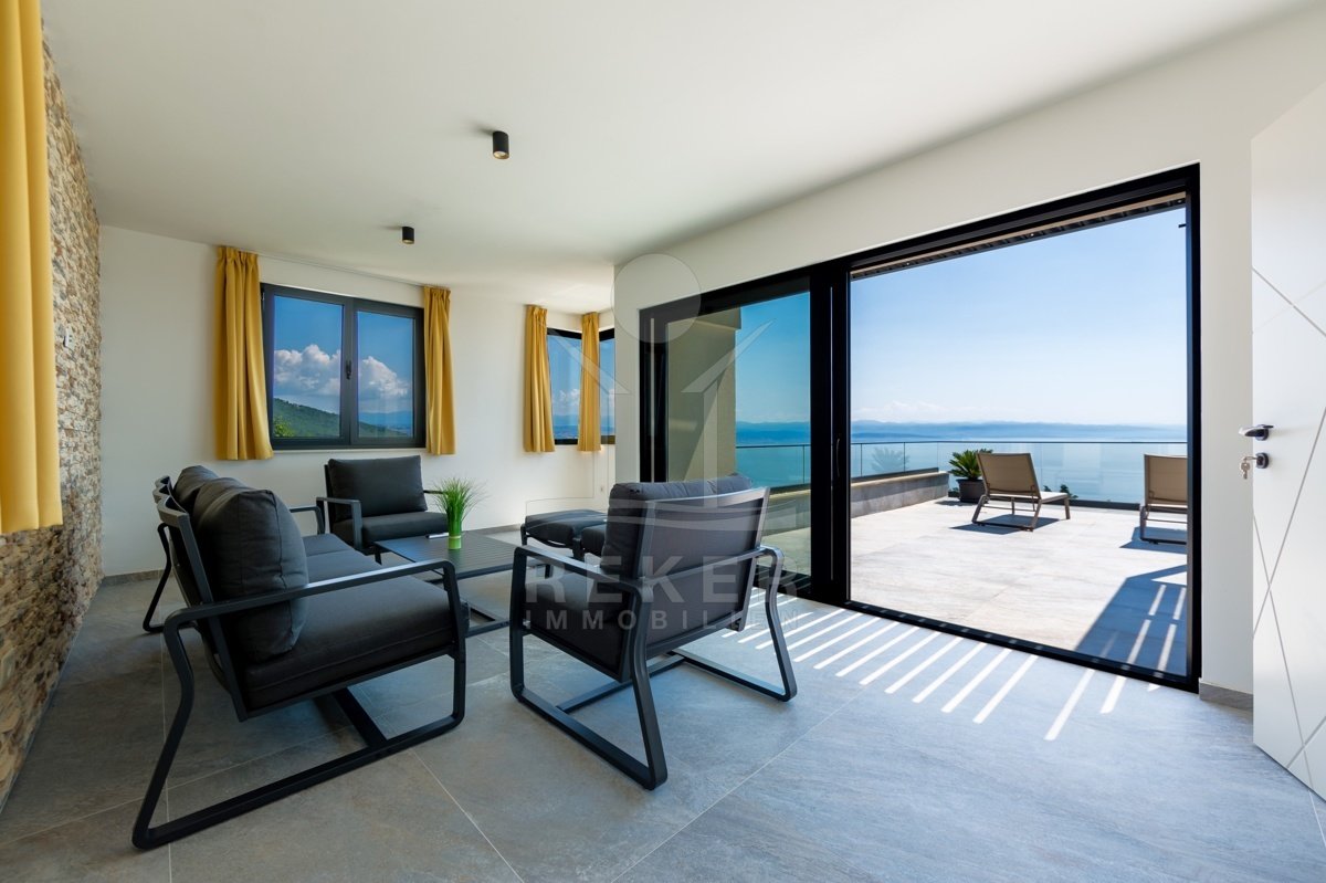 Grüne Hügel, absolute Ruhe und ein freier Blick auf die Kvarner Bucht … nur wenige Minuten oberhalb von Lovran. Diese Villa liegt in einer kleinen Seitenstraße, umgeben von Natur und hochwertiger Nachbarschaft. Die Nähe zu Opatija, die Aussicht auf