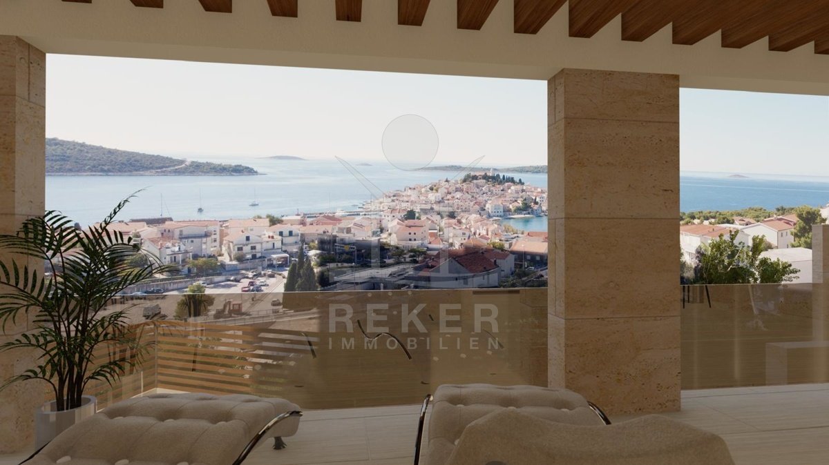 Primošten, ein Küstenort, der Ruhe und Meeresnähe verbindet. Nur rund 400 Meter trennen dieses Neubauprojekt vom Wasser. Die Lage ist ruhig und von Grün umgeben. Das Grundstück liegt in einer leichten Hanglage, was den Wohnungen einen schönen Blick und gute Belichtung ermöglicht. Fertigstellung: 2025. Insgesamt gibt es sieben Wohnungen, verteilt auf vier Etagen. Jede Etage beherbergt zwei Wohnungen, außer das oberste Geschoss: Dort liegt ein großzügiges Penthouse. Alle Einheiten sind bequem mit dem Aufzug erreichbar. Die Fassade ist hell, die Holz-Elemente geben dem Bau Charakter. Große Fenster bringen viel Licht nach innen. Im Erdgeschoss genießt jede Wohnung einen eigenen Pool. Jede Einheit verfügt über mindestens einen Garagenstellplatz, ein klarer Vorteil, besonders in Meeresnähe. Weitere Außenstellplätze stehen zusätzlich zur Verfügung.