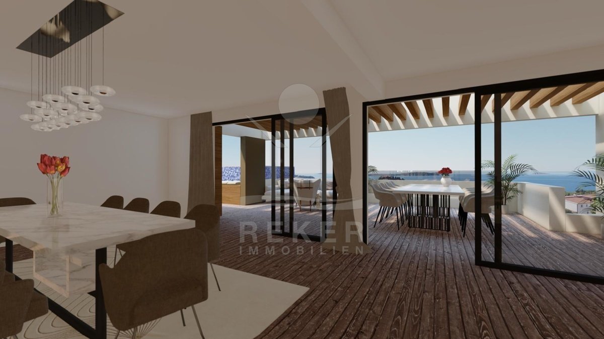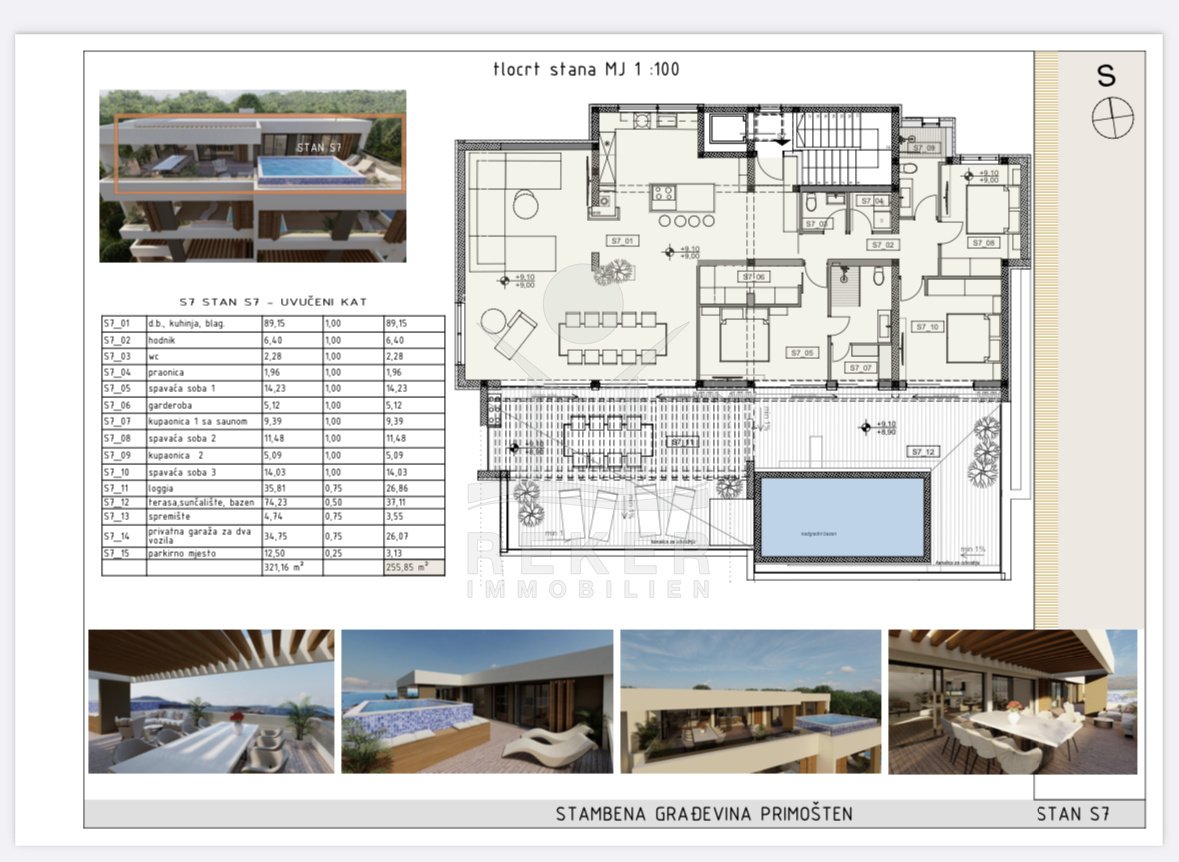 Primošten, ein Küstenort, der Ruhe und Meeresnähe verbindet. Nur rund 400 Meter trennen dieses Neubauprojekt vom Wasser. Die Lage ist ruhig und von Grün umgeben. Das Grundstück liegt in einer leichten Hanglage, was den Wohnungen einen schönen Blick und gute Belichtung ermöglicht. Fertigstellung: 2025. Insgesamt gibt es sieben Wohnungen, verteilt auf vier Etagen. Jede Etage beherbergt zwei Wohnungen, außer das oberste Geschoss: Dort liegt ein großzügiges Penthouse. Alle Einheiten sind bequem mit dem Aufzug erreichbar. Die Fassade ist hell, die Holz-Elemente geben dem Bau Charakter. Große Fenster bringen viel Licht nach innen. Im Erdgeschoss genießt jede Wohnung einen eigenen Pool. Jede Einheit verfügt über mindestens einen Garagenstellplatz, ein klarer Vorteil, besonders in Meeresnähe. Weitere Außenstellplätze stehen zusätzlich zur Verfügung.