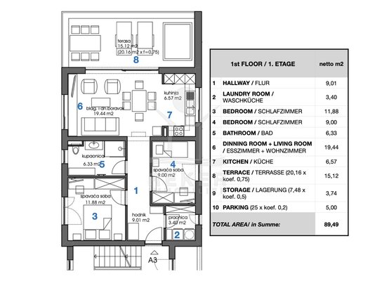 Diese Wohnung vereint Ruhe, Raum und Qualität: Mit zwei Schlafzimmern, großem Wohnbereich, überdachter Loggia und Abstellraum im Keller ist alles da, was Sie zum Wohlfühlen brauchen – inklusive eigenem Parkplatz direkt beim Haus.