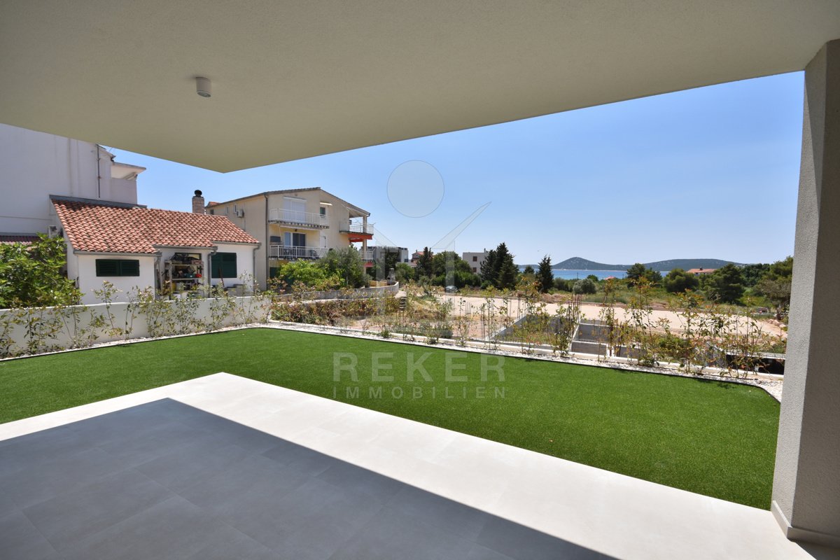 Sonnenlage mit Meerblick: Erdgeschoss mit Garten in Vodice