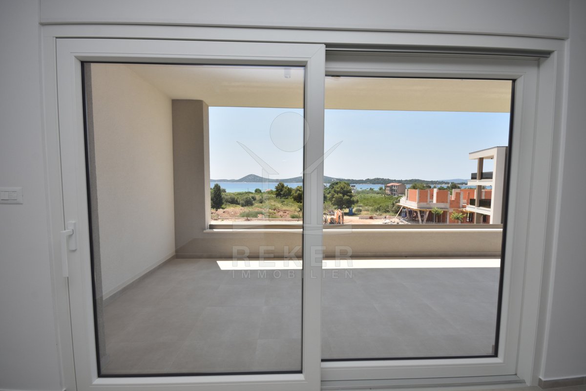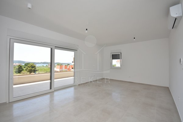 Neubau in Vodice: 1. Obergeschoss mit Meerblick und zwei Balkonen