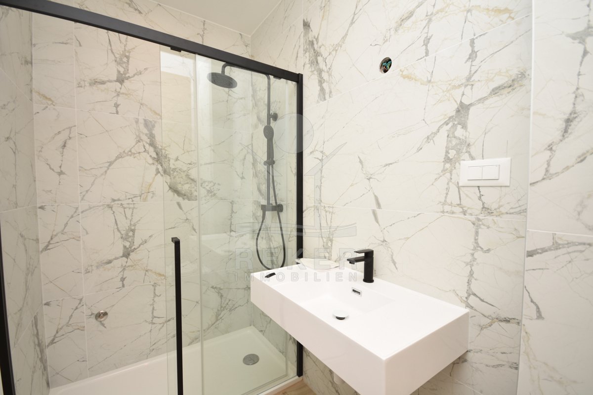 Balkon vorne, Balkon hinten – und dazwischen: drei Zimmer, zwei Bäder und jede Menge Licht. Diese Wohnung im ersten Stock zeigt, wie sich Neubauqualität und Aussicht perfekt verbinden.