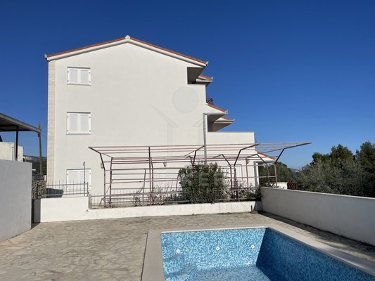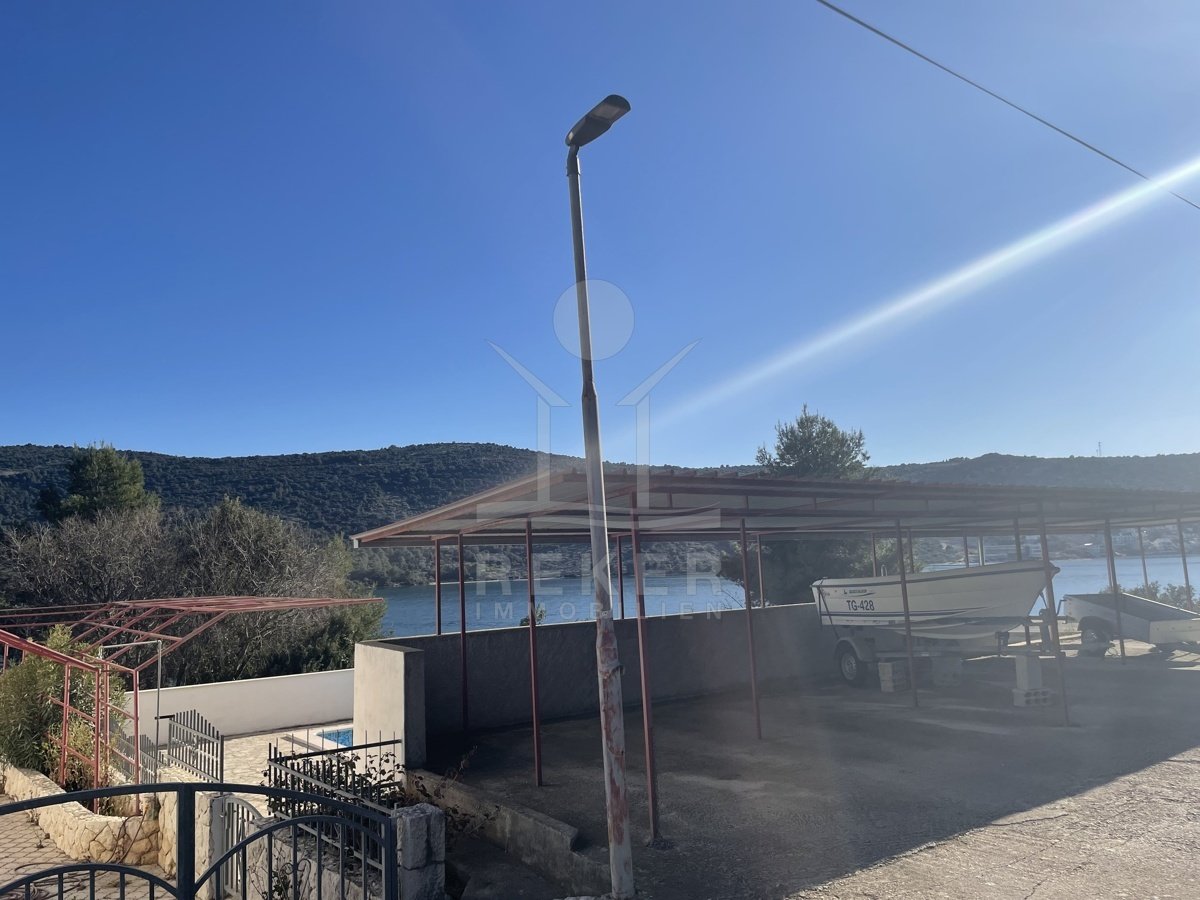 Nur wenige Minuten von Trogir entfernt, liegt dieses Haus in traumhafter Lage – direkt am Meer, nur durch eine ruhige Anliegerstraße getrennt. Der Blick schweift über das Wasser und die umliegende Natur. Die Südausrichtung bringt den ganzen Tag