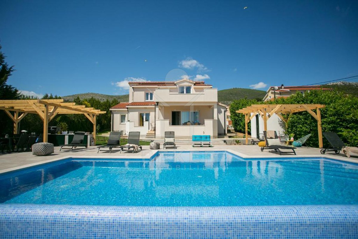Sie finden diese Villa in einem der ruhigeren Teile von Kaštela – einer Gegend, die sich ihren Charakter bewahrt hat. Die Zufahrt ist bequem, die Umgebung gepflegt. Die Nachbarschaft? Zurückhaltend, angenehm, grün. Gleichzeitig sind Split, Trogir und