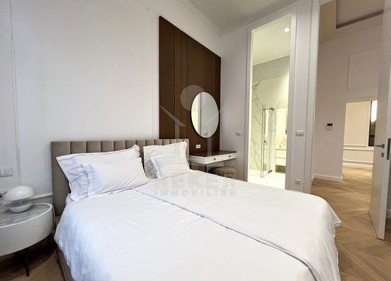 In dieser denkmalgeschützten Villa trifft klassische Eleganz auf modernen Komfort. Nur Schritte vom Meer entfernt bietet dieses exklusive Apartment alles, was anspruchsvolles Wohnen ausmacht: großer Balkon, Miele-Küche, zwei Schlafzimmer und pure