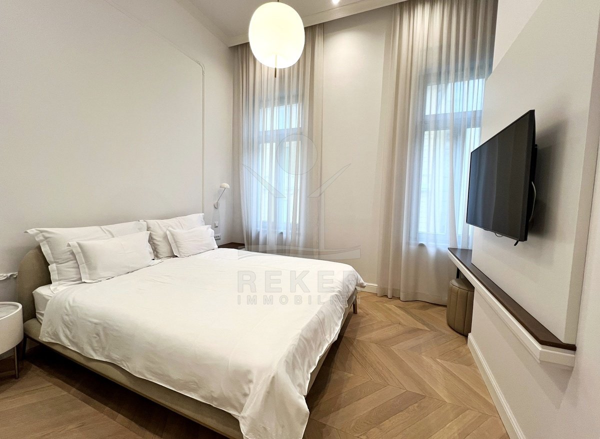 Zentraler geht’s kaum. Diese Wohnung liegt im Herzen von Opatija, nur ein paar Schritte vom Meer entfernt. Die Promenade ist gleich um die Ecke. Und das Haus? Eine renovierte Villa aus der Zeit der Monarchie – elegant, ruhig, geschichtsträchtig. Wer den Mix aus Stil und Lage sucht, ist hier richtig. Die Wohnung liegt im ersten Stock. Knapp 110 m² Wohnfläche und dazu ein großer Balkon mit Meerblick. 19 m² zum Durchatmen, Sonne tanken, Gäste empfangen.