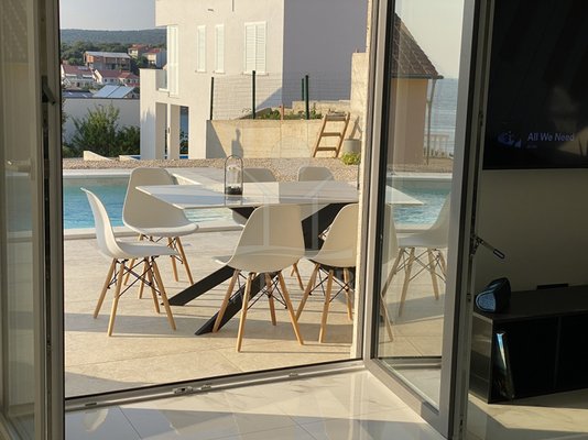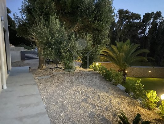 In Jakišnica, ganz im Nordwesten der Insel Pag, erwartet Sie eine moderne Villa, wie man sie nur selten findet. Eingebettet zwischen alten Olivenbäumen und mediterranem Grün steht das Haus ruhig am Waldrand – nur ein paar Schritte vom Meer entfernt.