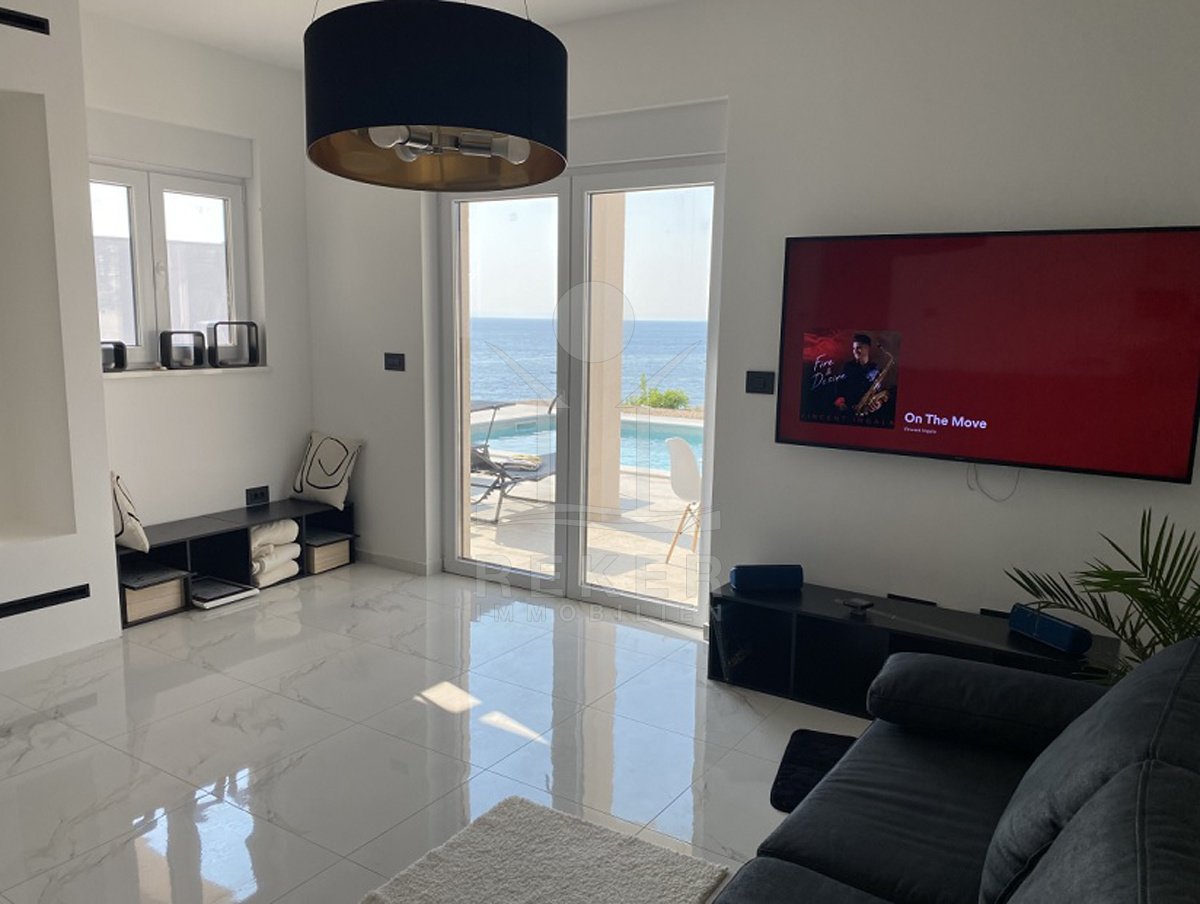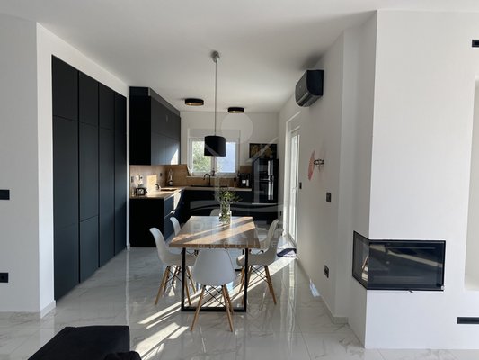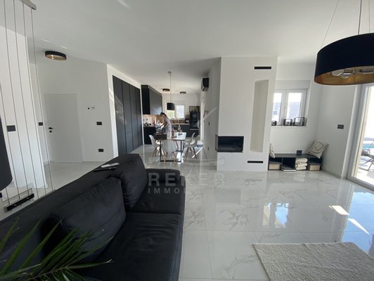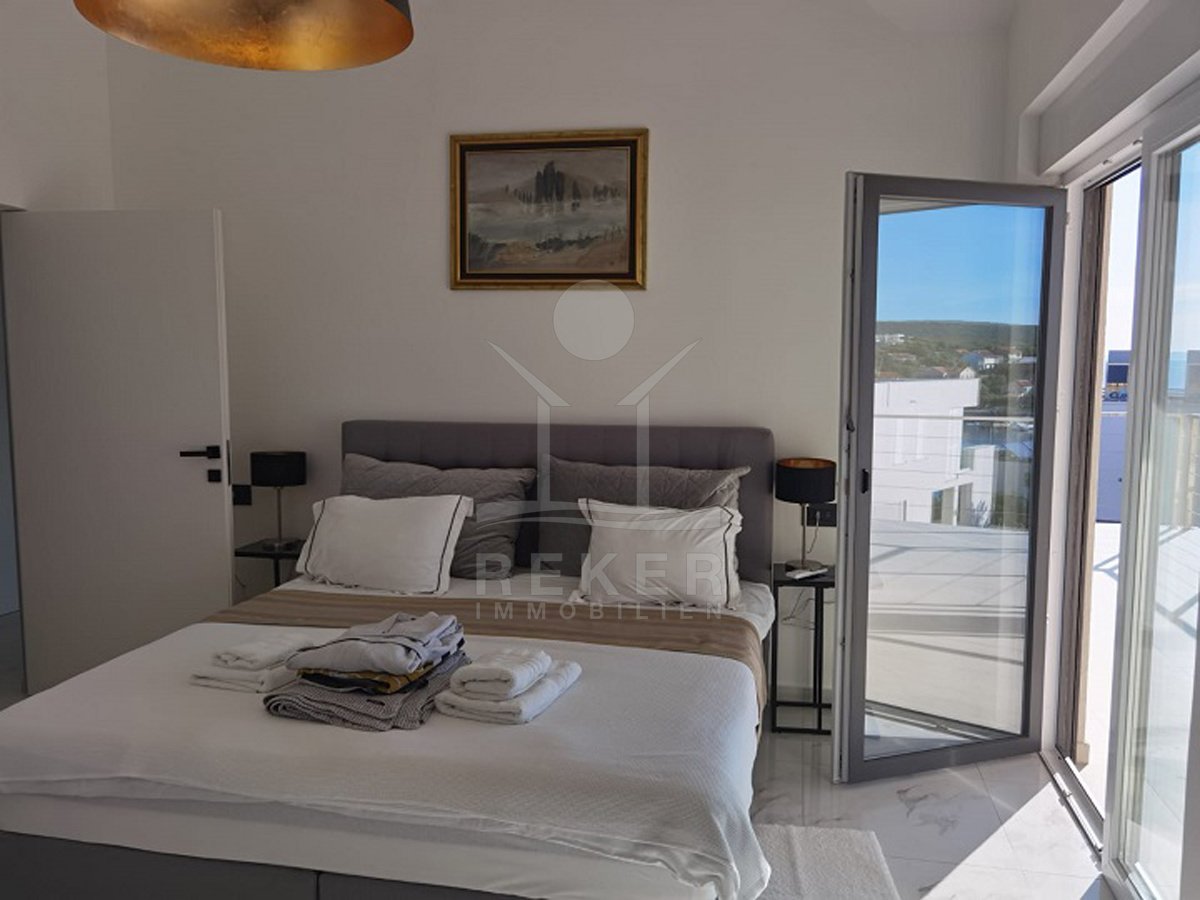 In Jakišnica, ganz im Nordwesten der Insel Pag, erwartet Sie eine moderne Villa, wie man sie nur selten findet. Eingebettet zwischen alten Olivenbäumen und mediterranem Grün steht das Haus ruhig am Waldrand – nur ein paar Schritte vom Meer entfernt. Von hier aus blicken Sie direkt auf die vorgelagerten Inseln Cres und Lošinj. Der nächste größere Ort, Novalja, ist in rund 12 Kilometern erreichbar. Drei private Stellplätze gehören zur Immobilie.