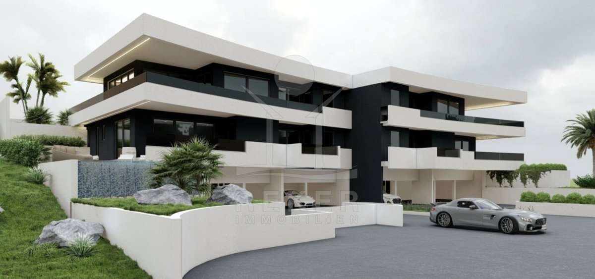 Der moderne Neubau steht auf zwei Etagen – mit insgesamt nur sechs Einheiten. Zwei Wohnungen im Erdgeschoss, darüber elegante Penthouses. Jede Einheit hat ihren eigenen Zugang zum Garten. Das schafft Privatsphäre und ein Gefühl wie im eigenen Haus. Vor dem Gebäude gibt es Außenstellplätze. Zusätzliche, überdachte Stellplätze sowie Abstellräume befinden sich im Untergeschoss. Die Architektur wirkt klar und hochwertig. Ein Ensemble für Menschen, die es modern und ruhig mögen.