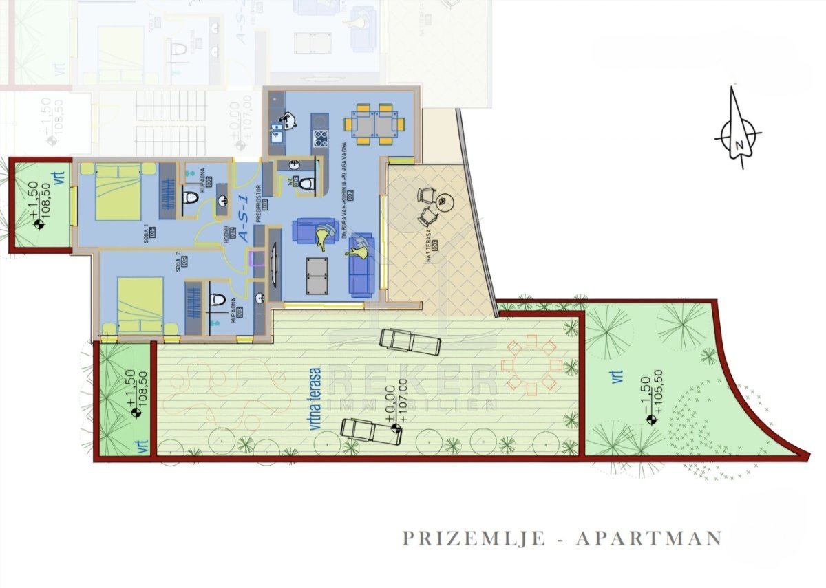 Mehr als 110 m² Garten – ganz für Sie allein. Die Wohnung A-S1 bietet Platz, Privatsphäre und freie Sicht aufs Meer.
