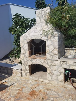 Oben in den Hügeln von Mandre, ruhig gelegen und mit Weitblick aufs offene Meer: Diese ebenerdige Villa bietet genau das, was viele suchen – Ruhe, Aussicht, Privatsphäre. Das Grundstück ist vollständig eingefriedet und über eine gepflasterte Zufahrt
