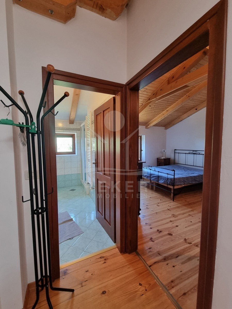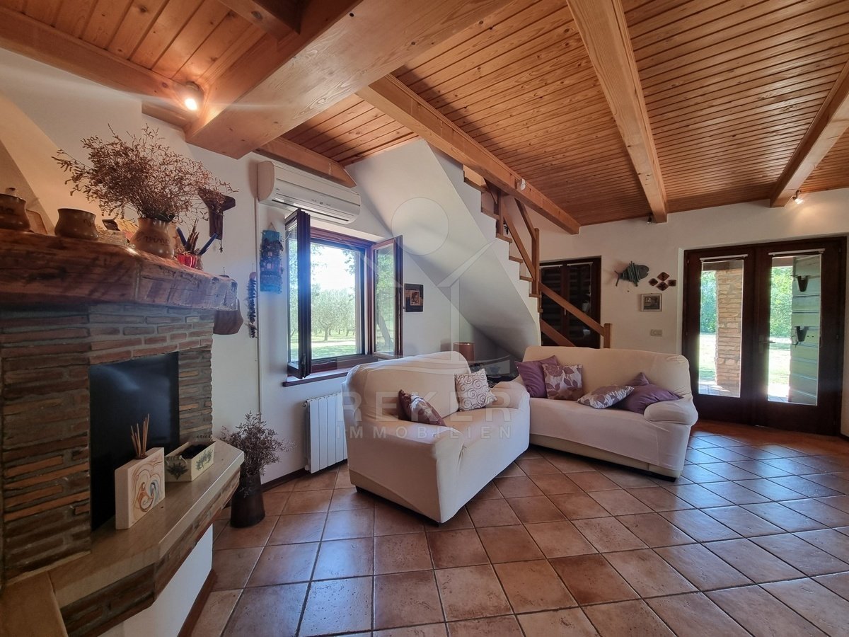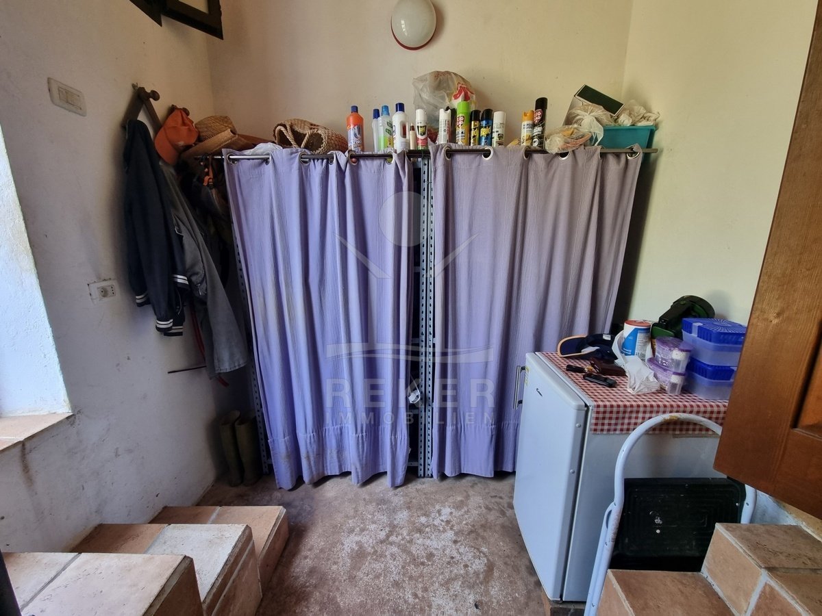 Rund 2,5 km vom Zentrum von Poreč entfernt – und trotzdem ganz für sich. Dieses Anwesen liegt versteckt inmitten von 260 Olivenbäumen auf einem 17.720 m² großen Grundstück. Die Umgebung ist absolut ruhig, keine direkten Nachbarn, nur Natur. Und doch sind Sie in wenigen Minuten am Meer. Der Weg führt über eine kleine Zufahrtsstraße, vorbei an Feldern und Hainen. Am Ende: dieses Steinhaus mit Charakter. Teilweise lässt sich sogar das Meer erkennen.