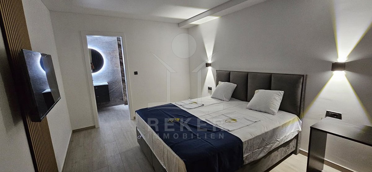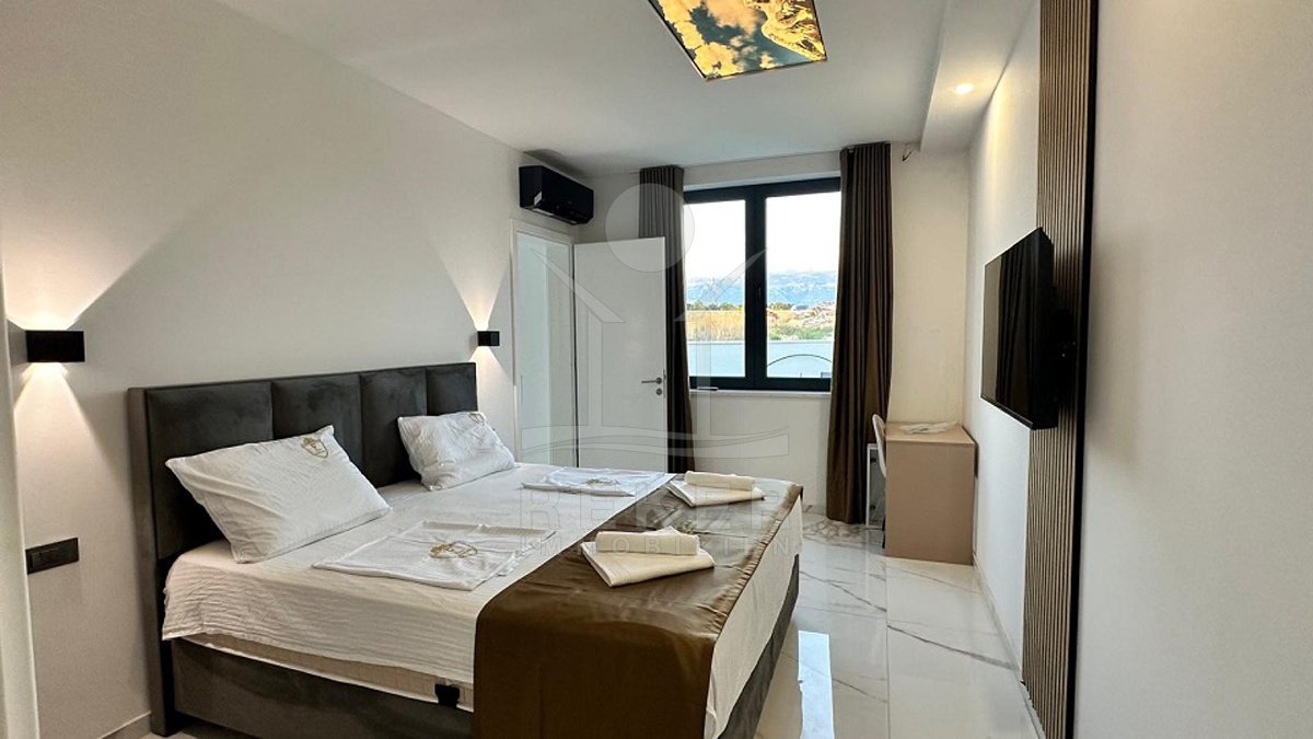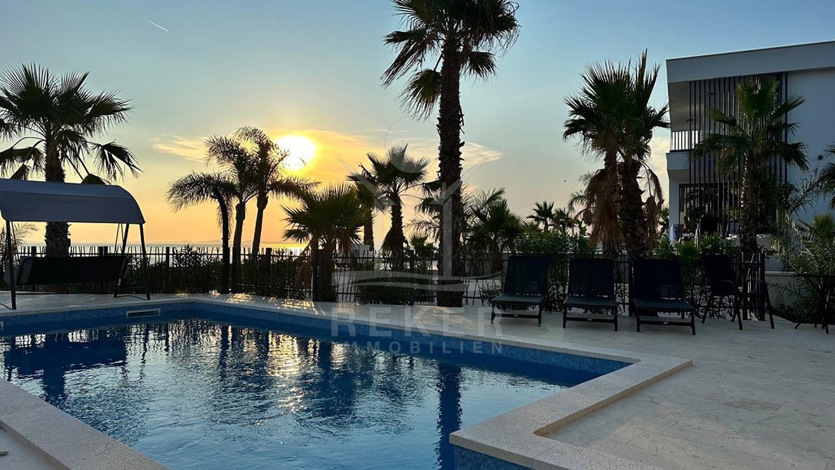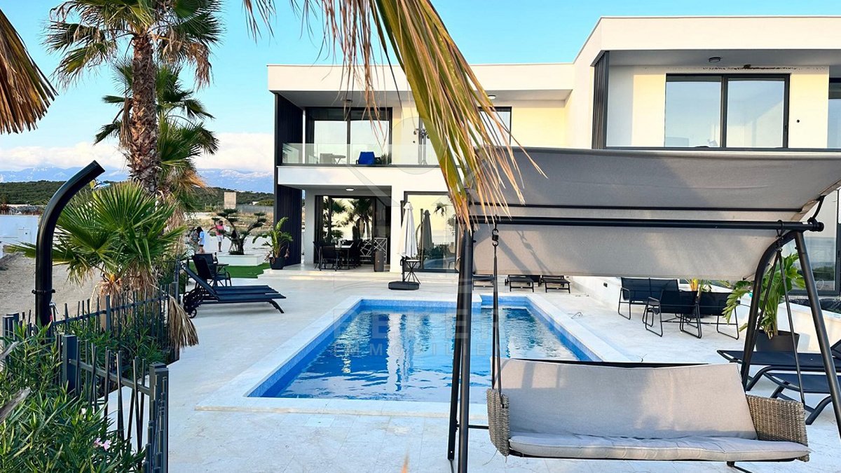 Nur wenige Minuten von Novalja entfernt steht diese moderne Villa in einem geschützten Ferienresort mit vier Einheiten. Jede Villa hat einen eigenen Eingang. Das gesamte Resort ist umzäunt und mit Sportplätzen ausgestattet. Bis zum Meer sind es rund 850 Meter. Was Sie von hier aus erwartet, ist ein Ausblick der Extraklasse: offener Meerblick, tiefes Blau, Sonnenuntergänge über Palmen.