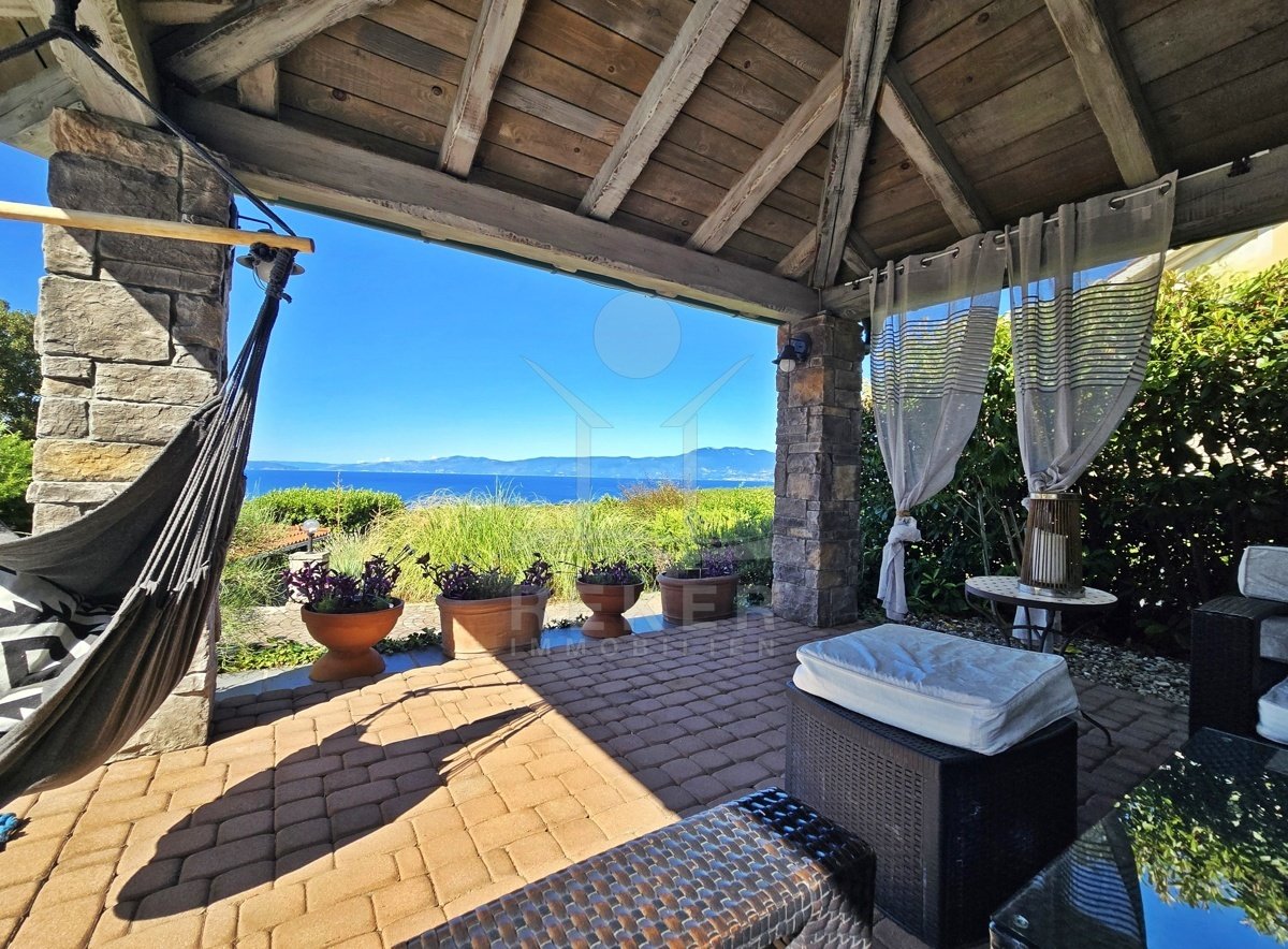 Wie geschaffen für alle, die sich Raum, Ruhe und Aussicht gönnen wollen. Diese grüne Wohn-Oase bietet Adria-Feeling mit Niveau: Garten, Pool, Outdoor-Küche und ein unvergleichlicher Meerblick aus fast jedem Winkel. Nur 600 m trennen Sie vom Strand – durch nichts als pure Natur.