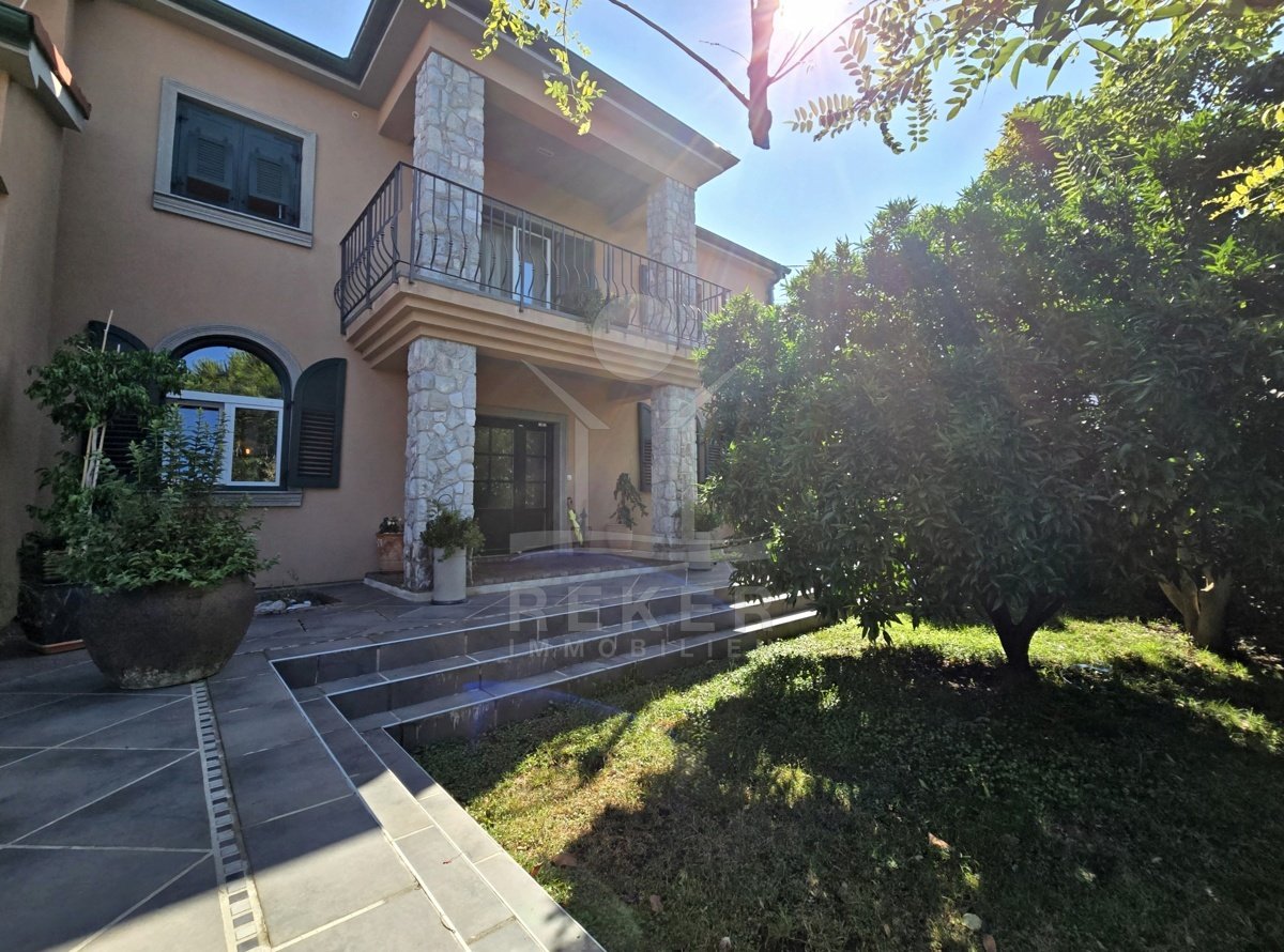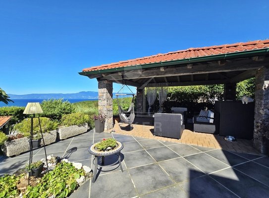 Wie geschaffen für alle, die sich Raum, Ruhe und Aussicht gönnen wollen. Diese grüne Wohn-Oase bietet Adria-Feeling mit Niveau: Garten, Pool, Outdoor-Küche und ein unvergleichlicher Meerblick aus fast jedem Winkel. Nur 600 m trennen Sie vom Strand –