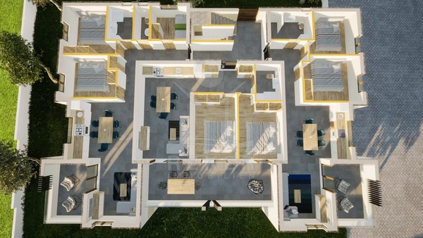Das Gebäude passt perfekt in diese Umgebung. Drei Etagen, neun Wohnungen, klare Linien. Modern, aber nicht aufdringlich. Im Erdgeschoss gehören kleine Gartenstücke zu den Wohnungen. In den oberen Etagen gibt’s einen Abstellraum unten und obendrauf: der Blick auf Meer und Umgebung. Die Bauarbeiten laufen, alles nach Plan. Einzug? Frühjahr 2026.