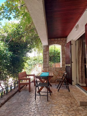 Zentrale Lage, kurze Wege, viel Privatsphäre: Die zwei charmanten Häuser befinden sich mitten im Zentrum von Novalja – und trotzdem umgeben von sattem Grün. Der Stadtstrand ist keine 200 Meter entfernt, auch die Uferpromenade ist bequem zu Fuß