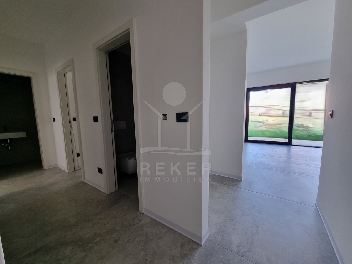 Nur ein paar Minuten vom Meer entfernt. Ruhige Wohnstraße, kein Durchgangsverkehr. Diese Neubauwohnung im Erdgeschoss ist genau das Richtige, wenn Sie ebenerdig wohnen möchten – mit Garten und Terrasse direkt vor der Tür. Das Haus wurde 2025 fertiggestellt, Sie wären Erstbezug. Ein Parkplatz ist dabei, der Eingang ist separat.
