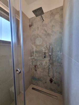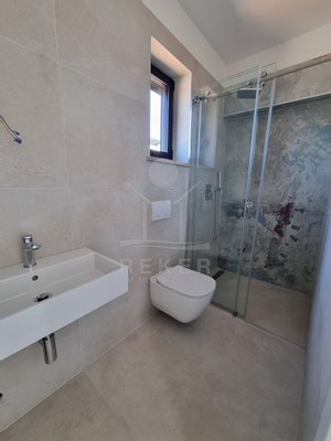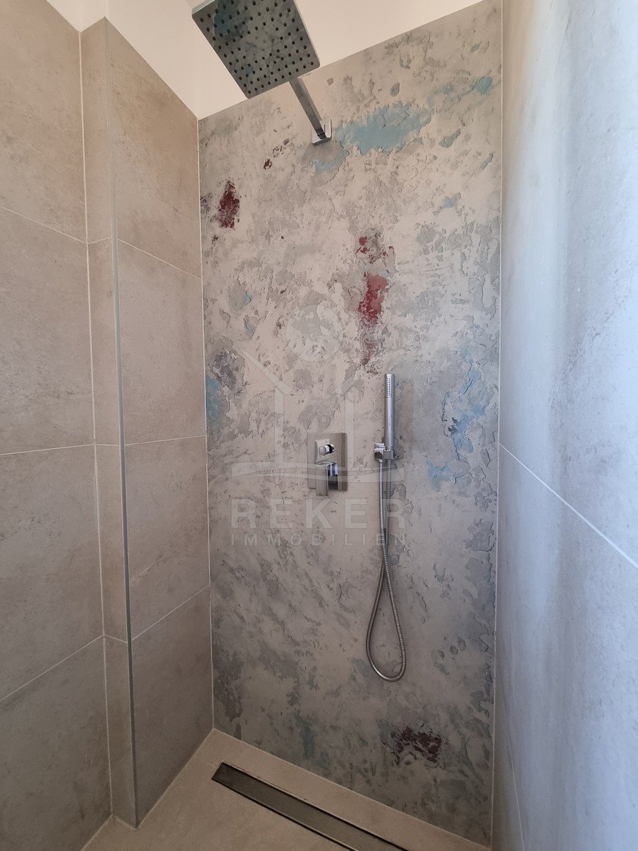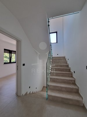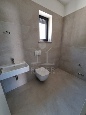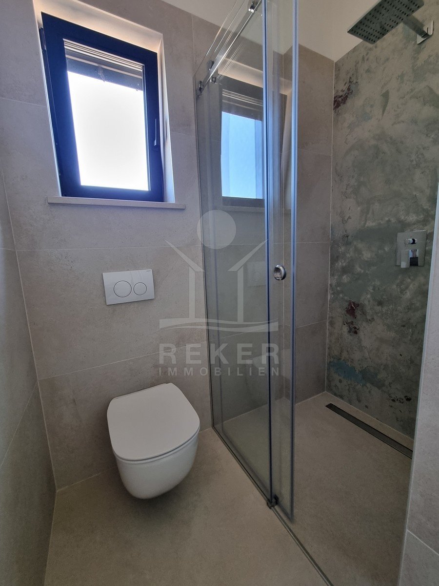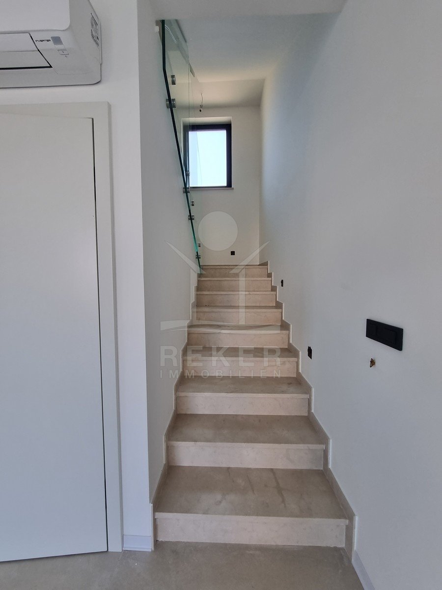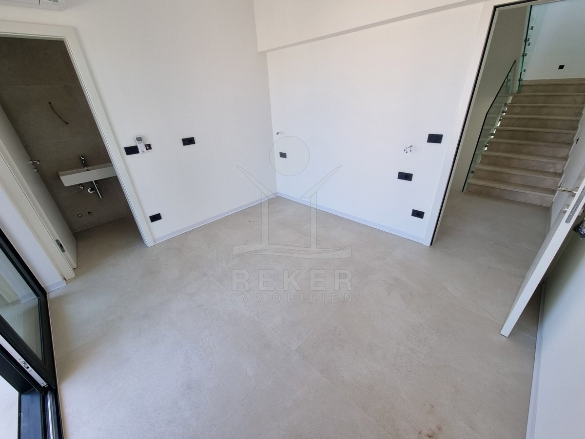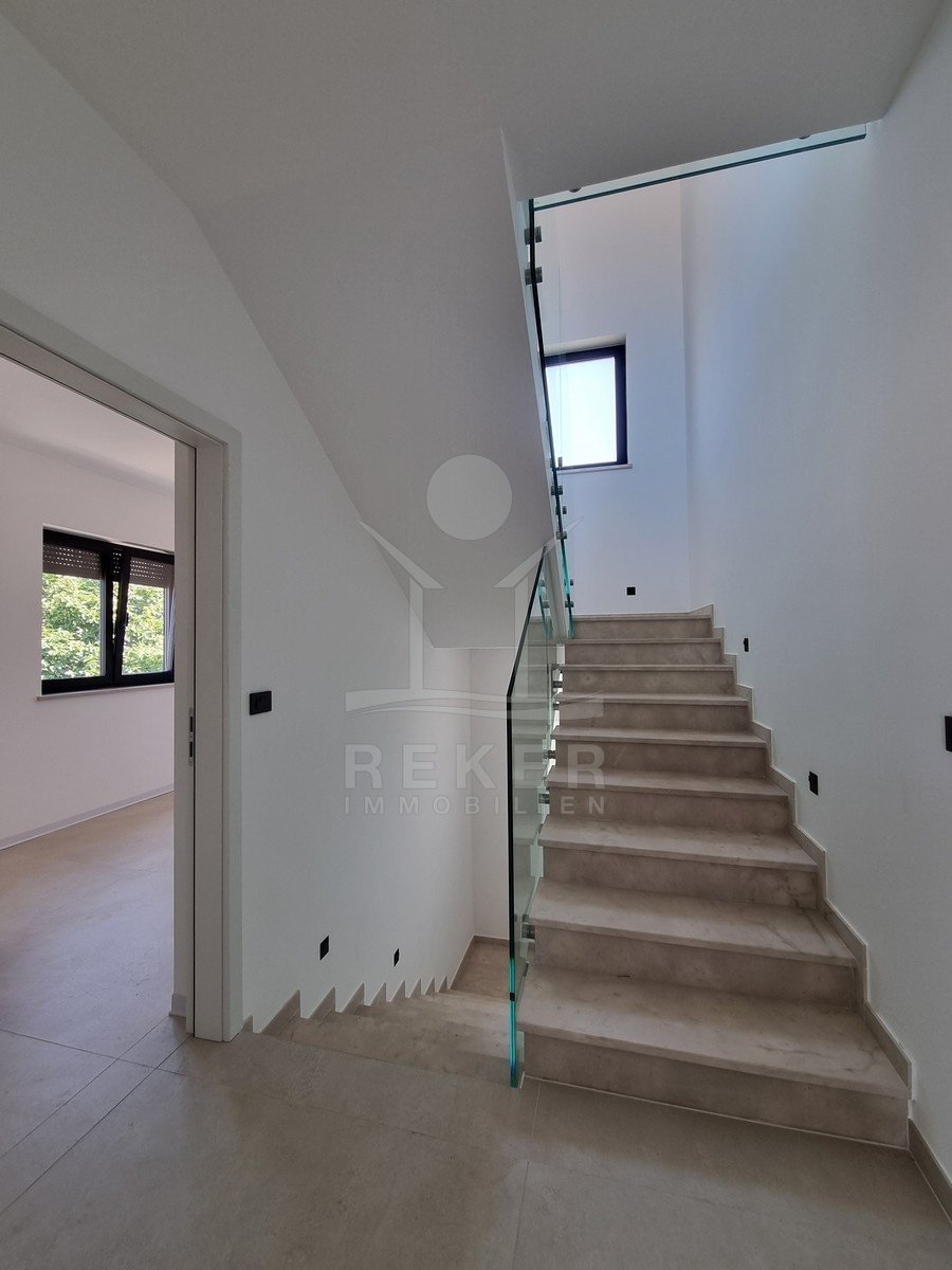 Nur einen Kilometer vom Meer entfernt, in einem ruhigen Teil von Poreč, steht dieses moderne Reihenhaus auf drei Etagen. Die Umgebung ist angenehm zurückgezogen, ohne Durchgangsverkehr. Zwei private Stellplätze gehören dazu – direkt am Haus, ganz