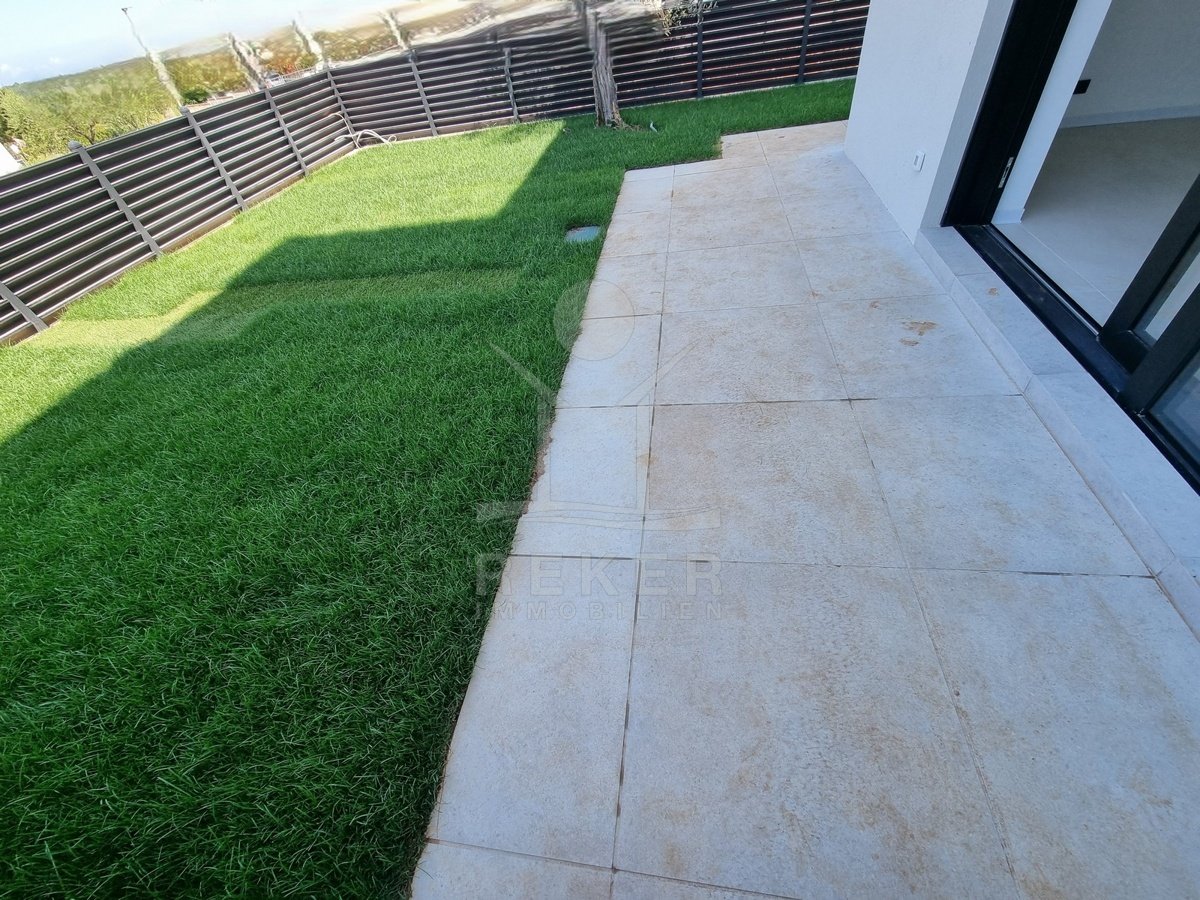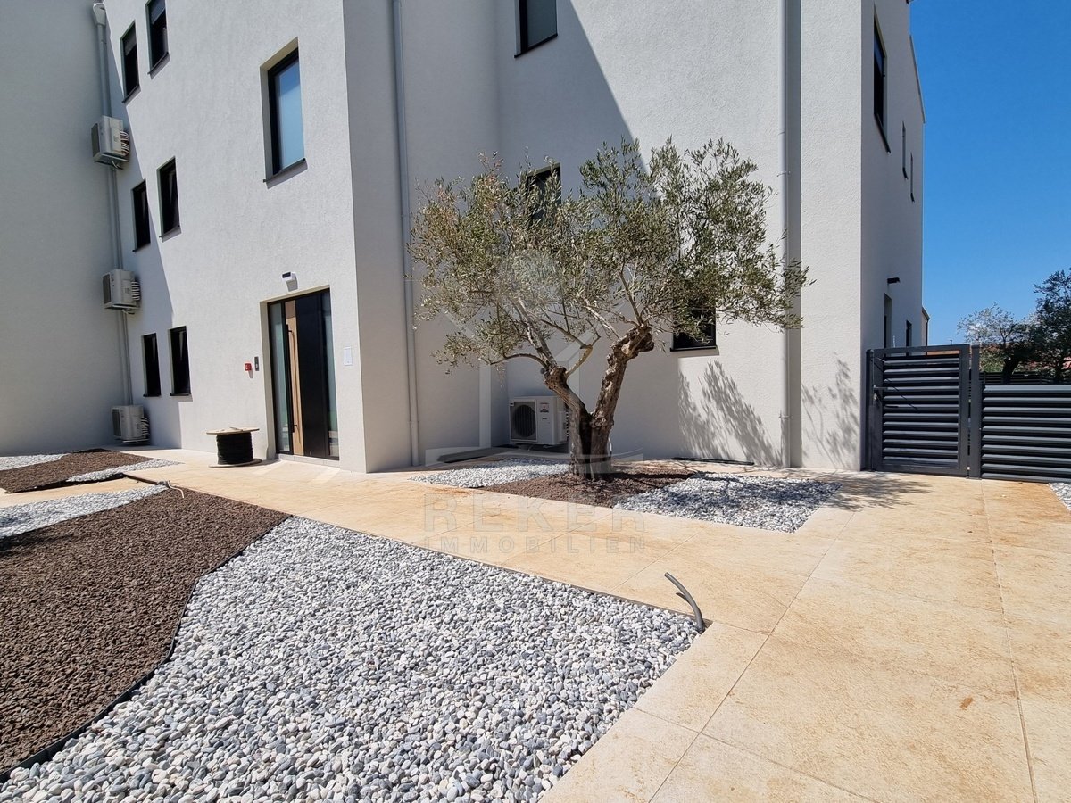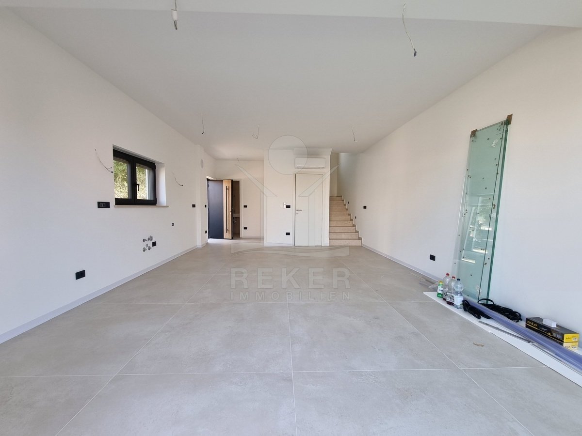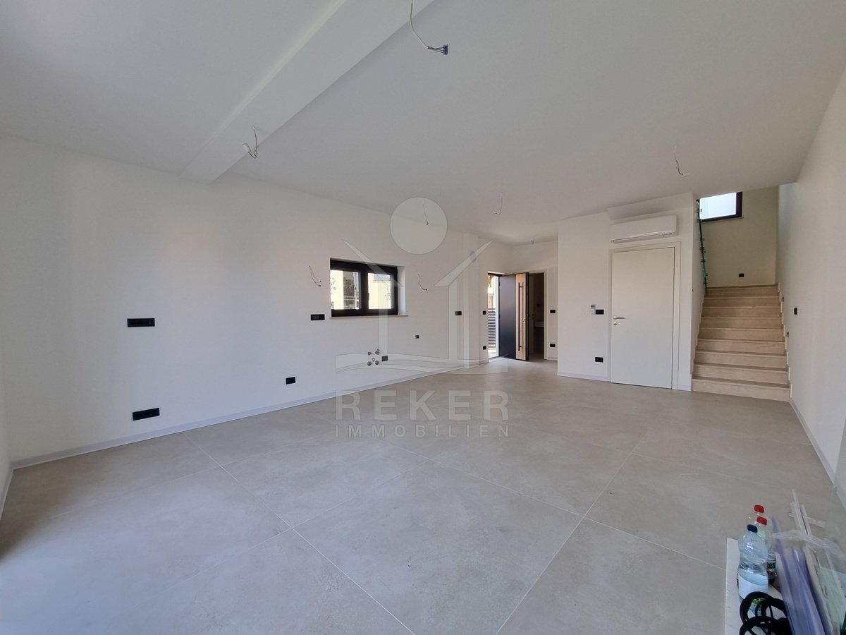 Nur einen Kilometer vom Meer entfernt, in einem ruhigen Teil von Poreč, steht dieses moderne Reihenhaus auf drei Etagen. Die Umgebung ist angenehm zurückgezogen, ohne Durchgangsverkehr. Zwei private Stellplätze gehören dazu – direkt am Haus, ganz ohne Parkplatzsuche.
