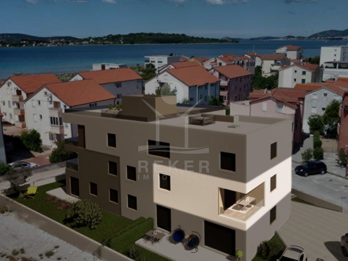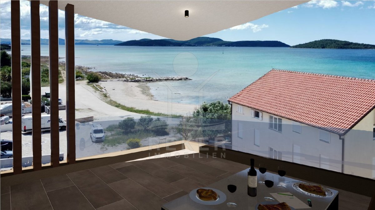 Das Gebäude hat acht Wohnungen, verteilt auf drei Etagen und ein Flachdach. Im Erdgeschoss gibt’s Gärten, ab dem ersten Stock freie Sicht aufs Meer. Modernes Design, klare Linien, helle Fassade. Die oberen Wohnungen mit Balkon, ganz oben sogar mit großer Dachterrasse. Jeder Wohneinheit ist ein Parkplatz zugeordnet. Fertigstellung ist für Herbst 2026 geplant.
