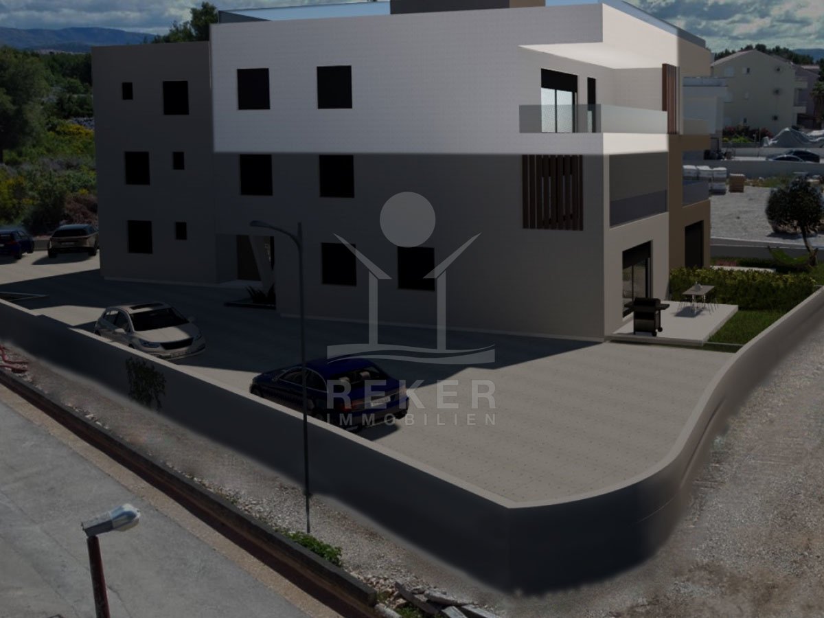 Das Gebäude hat acht Wohnungen, verteilt auf drei Etagen und ein Flachdach. Im Erdgeschoss gibt’s Gärten, ab dem ersten Stock freie Sicht aufs Meer. Modernes Design, klare Linien, helle Fassade. Die oberen Wohnungen mit Balkon, ganz oben sogar mit großer Dachterrasse. Jeder Wohneinheit ist ein Parkplatz zugeordnet. Fertigstellung ist für Herbst 2026 geplant.