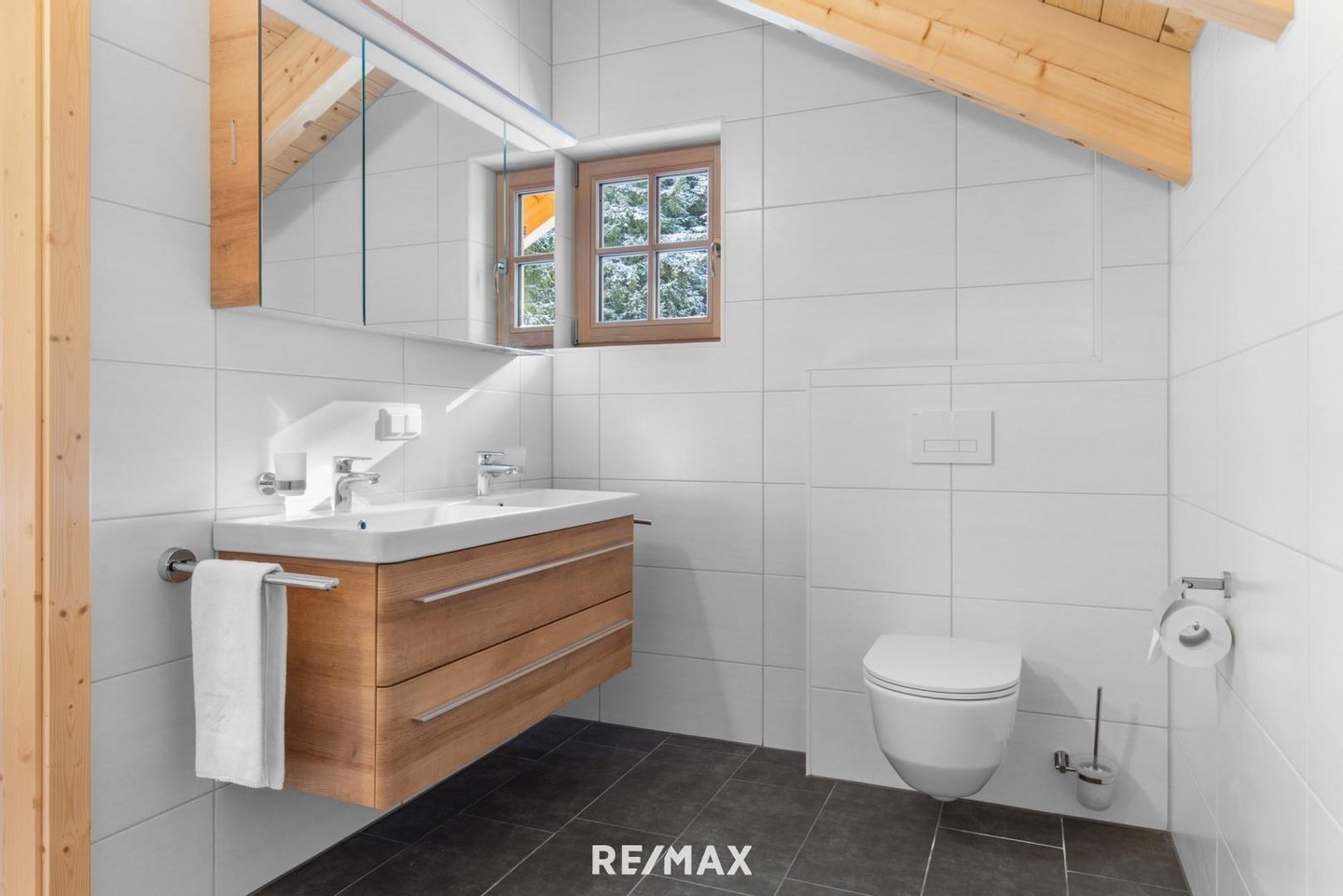Durch die großen Fenster, die gemütliche Terrassenfläche mit ca. 24,50 m² (im KG) und die beiden Balkone mit je ca. 32,60 m² (im EG) sowie ca. 7,40 m² (im DG), genießen Sie eine atemberaubende Aussicht auf die umliegende Berglandschaft.