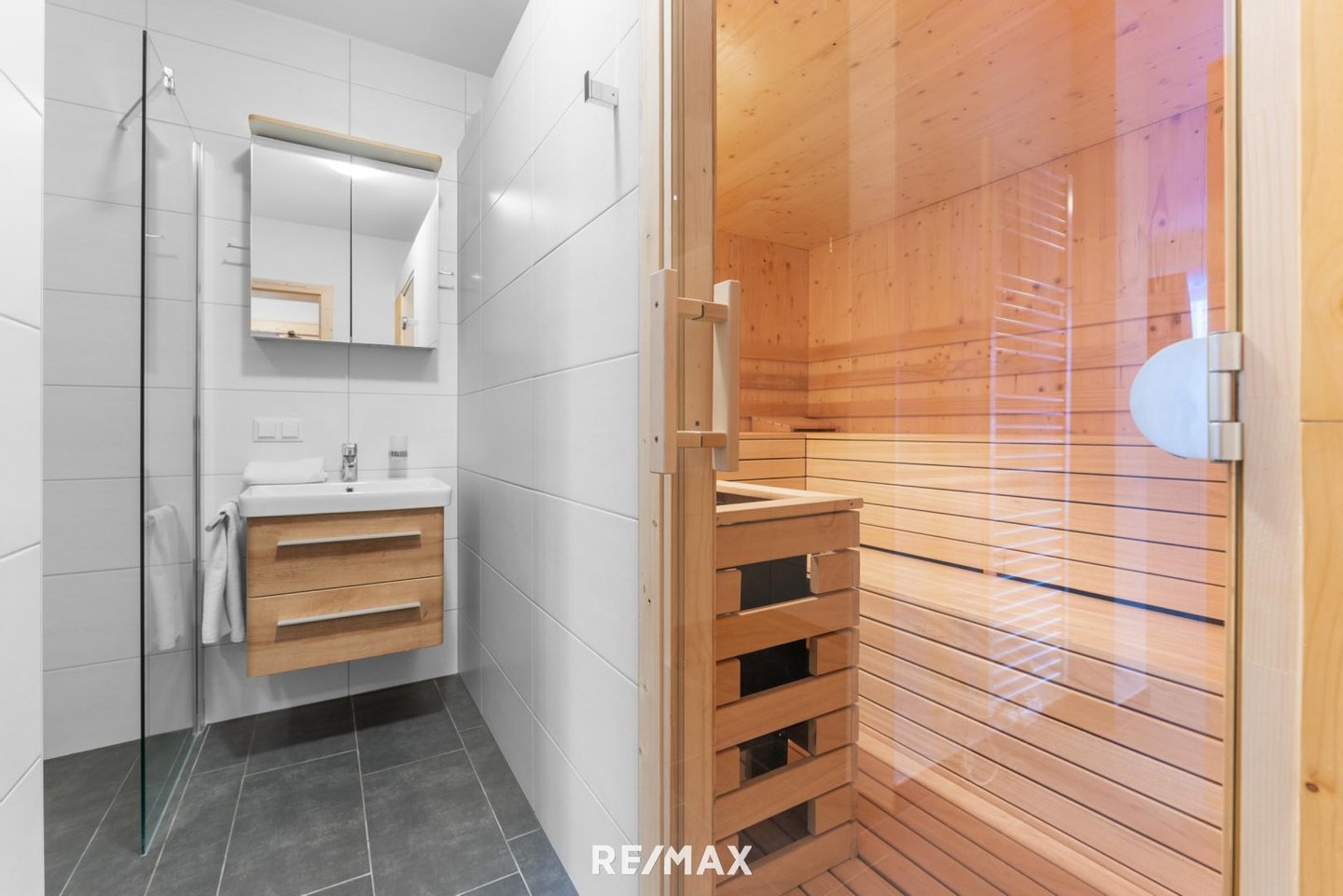 Das Kellergeschoss mit ca. 44,30 m² bietet Ihnen einen herrlichen Wellnessbereich, der Sie nach einem aktiven Tag in den Bergen zum Entspannen einlädt. Der Bereich ist mit Sauna, Whirlpool-Wanne, Relax-Couch, Dusche und WC ausgestattet. Weiters gibt es noch einen Vorraum, einen Waschraum, einen Technikraum und einen offenen Abstellraum.