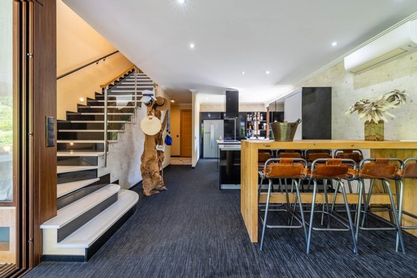 Das Herzstück des Hauses ist eine luxuriös ausgestattete Küche mit stilvollen Oberflächen – ideal für Kochliebhaber. Die angrenzenden Innen- und Außenbereiche zum Essen schaffen die perfekte Atmosphäre um Gäste zu empfangen oder für gemütliche Abende mit der Familie.