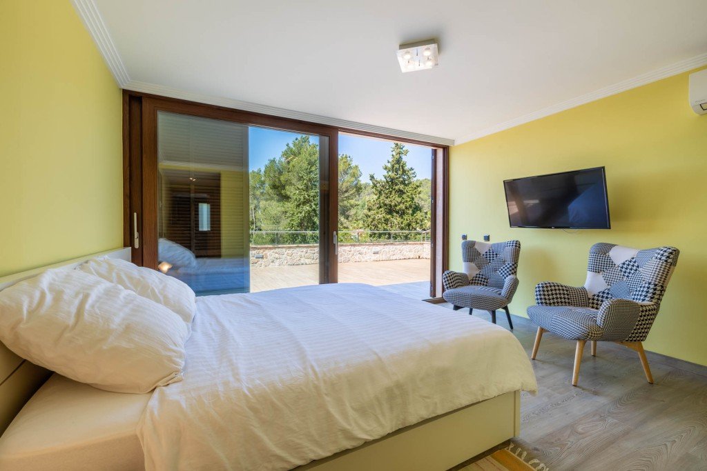 Komfort & Sicherheit das ganze Jahr über : Die Villa ist mit einer Klimaanlage (warm/kalt) ausgestattet, die ganzjährig für ein angenehmes Raumklima sorgt. Zusätzlich stehen drei elektrische Radiatoren für die Wintermonate zur Verfügung. Eine moderne Alarmanlage sorgt für Sicherheit, während die ruhige Lage ein hohes Maß an Privatsphäre garantiert.