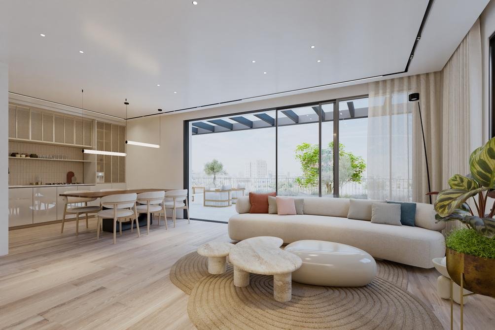 Eine einzigartige Maisonette-Wohnung in einem neuen Boutique-Gebäude in einer hohen Etage mit beeindruckender Deckenhöhe und freiem Blick auf die Skyline von Tel Aviv und den Yarkon Park. Sorgfältige Planung mit intelligenter Aufteilung zwischen einem geräumigen öffentlichen Bereich auf der Wohnetage und einer separaten Schlafzimmeretage. Die reichhaltige Ausstattung umfasst eine hochwertige, maßgefertigte Küche, luxuriöses Fischgrätparkett, VRF-Klimaanlage, fortschrittliche elektrische Systeme, sorgfältige Tischlerarbeiten, eine Terrasse mit Terrassenboden, hohe Decken und Designelemente auf höchstem Niveau.