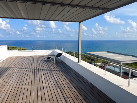 Dieses fantastisches und einmaliges 230 m² (gebaut) große Duplex befindet sich auf einem erhöhten Grundstück mit Blick auf das Mittelmeer innerhalb der sicheren Wohnanlage von Casas del Mar, umgeben von Grünzonen und nur einen 10minütigen Spaziergang von Sandstränden und versteckten Buchten entfernt, nahe Sitges sowie dem Flughafen und der Stadt Barcelona.