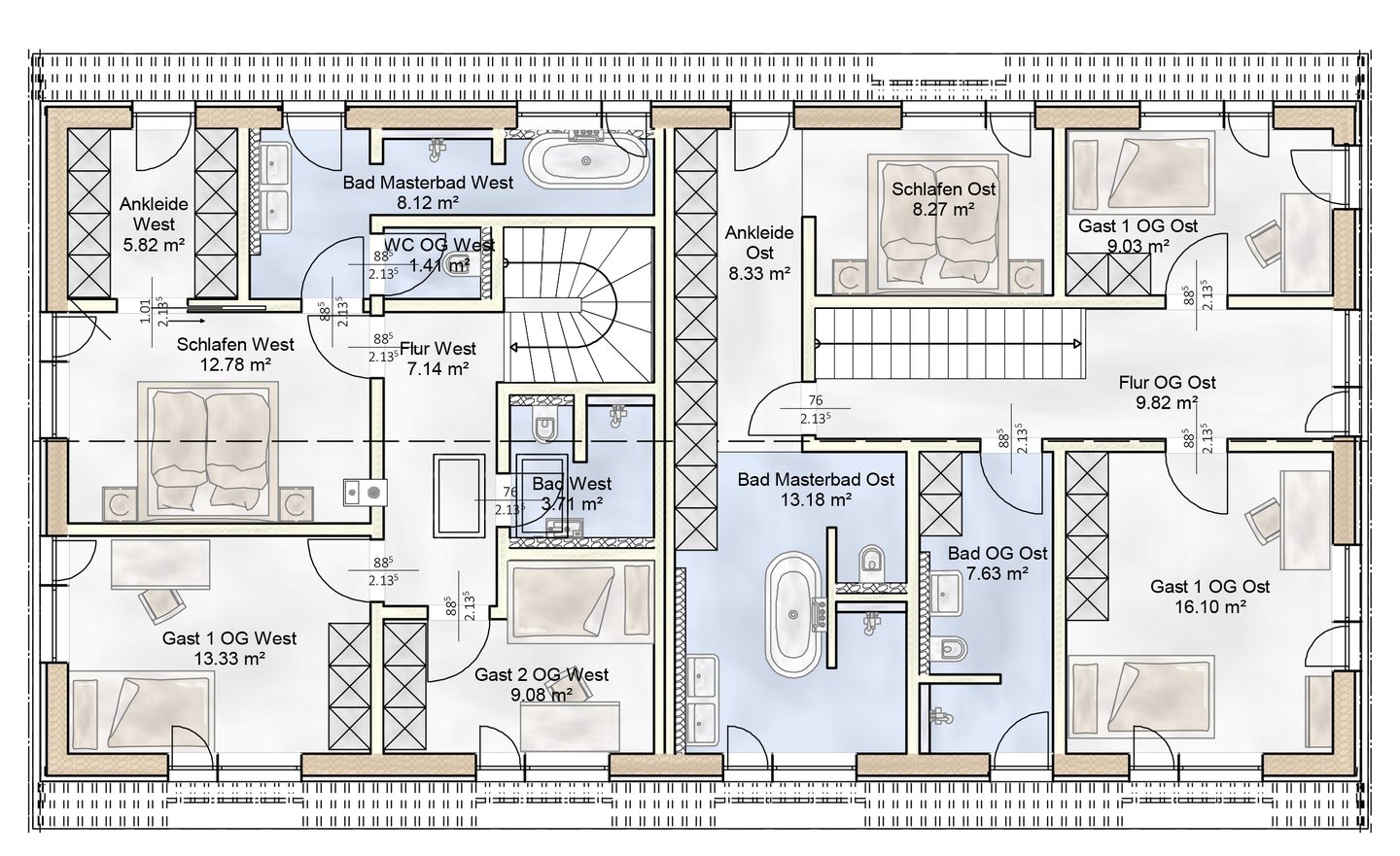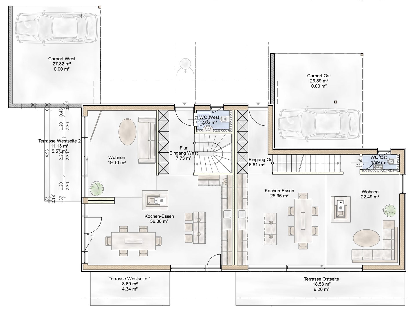 Die Häuser zeichnen sich durch eine klare Architektur und einen geräumigen Grundriss mit ...mehr lesen