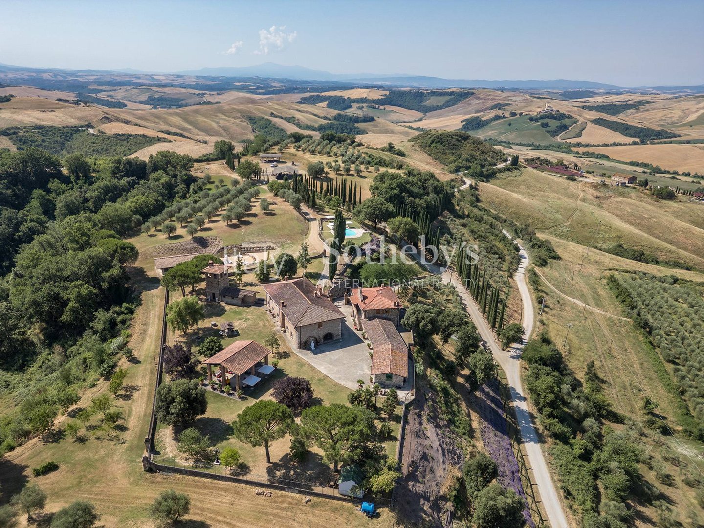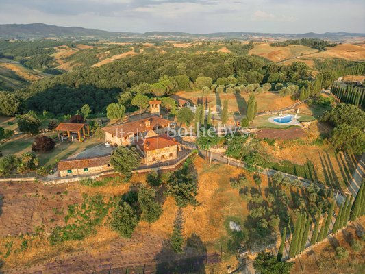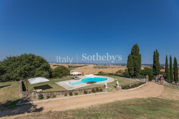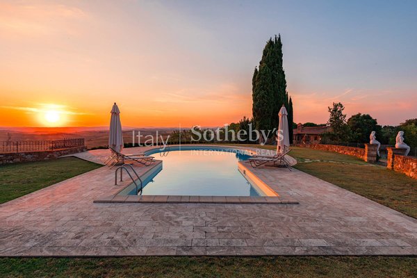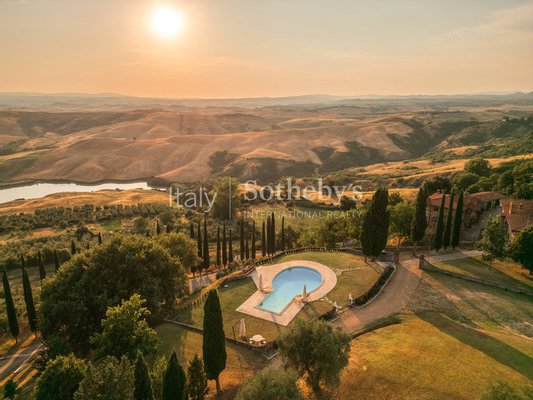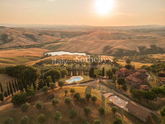 Im Herzen des authentischsten Teils der Toskana, zwischen den sanften Hügeln der Crete Senesi und unter Himmeln, die wie gemalt erscheinen, liegt dieses außergewöhnliche Steingut - ein Ort, an dem die Zeit langsamer vergeht und Schönheit zum