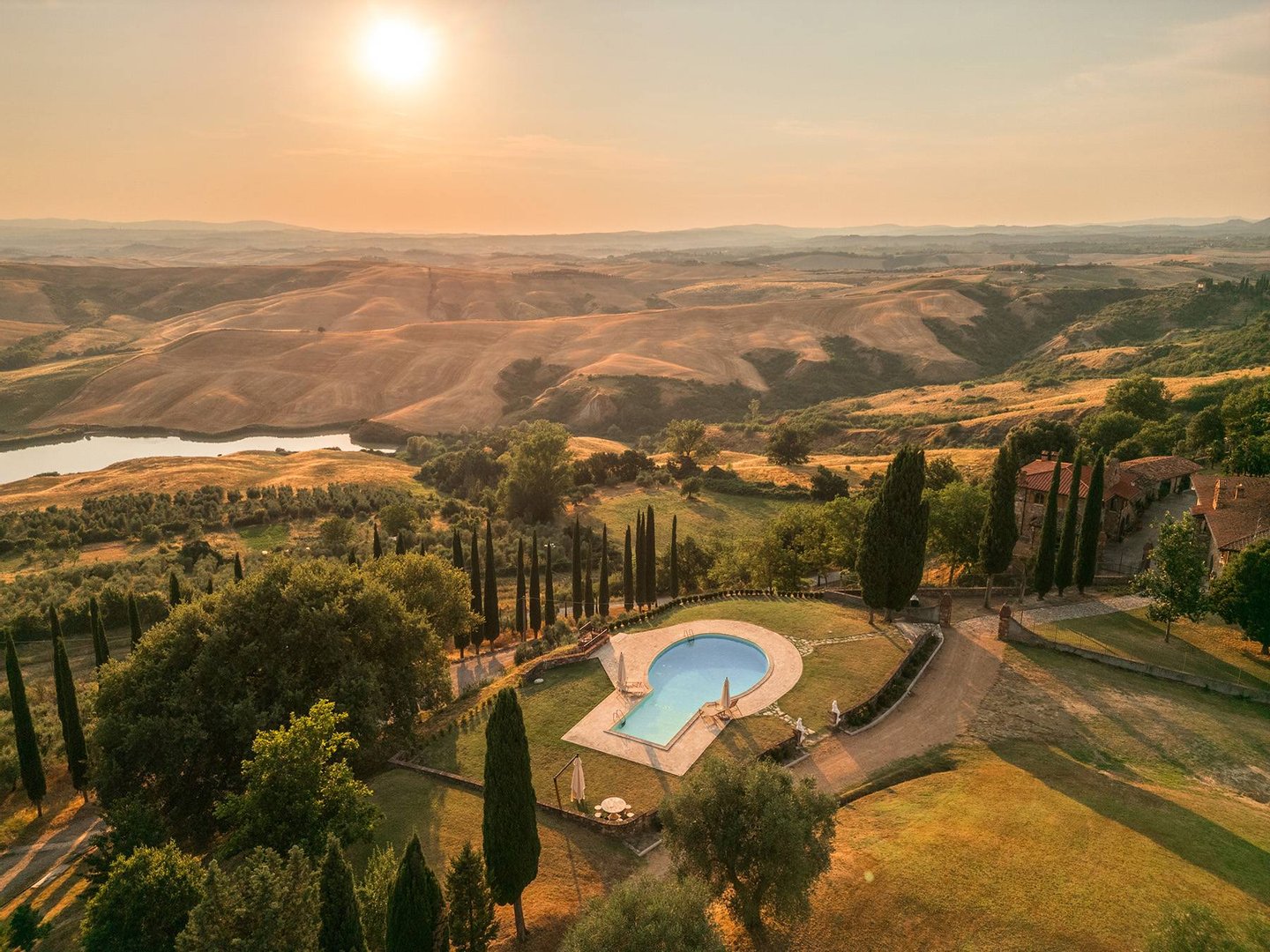 Im Herzen des authentischsten Teils der Toskana, zwischen den sanften Hügeln der Crete Senesi und unter Himmeln, die wie gemalt erscheinen, liegt dieses außergewöhnliche Steingut - ein Ort, an dem die Zeit langsamer vergeht und Schönheit zum täglichen Erlebnis wird.