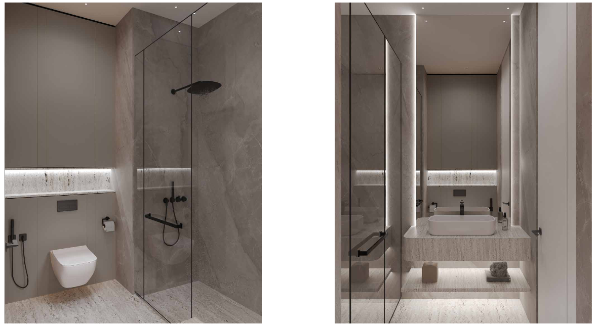 Die voll möblierten Einheiten bestechen durch hochwertige Ausführungen wie die SMEG-Küchen und Villeroy & Boch Bestecke. Travertin- und Marmorböden sowie raumhohe Fenster schaffen eine luxuriöse Atmosphäre mit Panoramablick auf das Meer und die Stadt. Der Zugang zur Uferpromenade und dem Yachthafen sowie das Poolrestaurant und die Bar sorgen für ein exklusives Wohngefühl.