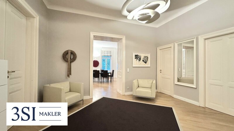 Diese exklusive ca. 150 m² große Wohnung mit einer knapp 10 m² Loggia, die in den idyllischen Innenhof – Ihre persönliche grüne Oase – ausgerichtet ist, vereint stilvolles Wohnen mit