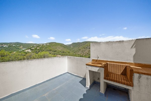 Im Inneren verfügt das Haus über drei gut ausgestattete Schlafzimmer und zwei moderne Badezimmer, ergänzt durch Holzböden und hochwertige Oberflächen. Die offene Küche ist komplett mit Einbaugeräten ausgestattet und geht nahtlos in den Wohn- und Essbereich über. Es gibt zwei großzügige Terrassen sowie eine geräumige Dachterrasse mit Außenküche, die sich perfekt für gesellige Anlässe eignet.