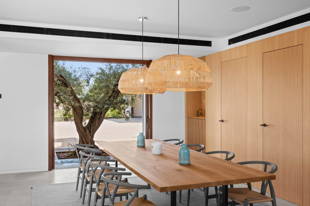 Beim Betreten empfängt Sie ein lichtdurchfluteter, offener Wohnbereich mit einer hochmodernen Miele-Küche inklusive Tellerwärmer sowie ein großzügiger Essbereich – ideal für gesellige Abende. Im Erdgeschoss befinden sich außerdem ein stilvolles Gästezimmer mit eigenem Bad, ein zusätzliches Gästebad sowie ein voll ausgestatteter Hauswirtschaftsraum. Große Glasschiebetüren schaffen einen fließenden Übergang zur sonnigen Terrasse – der perfekte Ort zum Entspannen mit Blick auf den Infinity-Pool und den liebevoll angelegten Garten.
